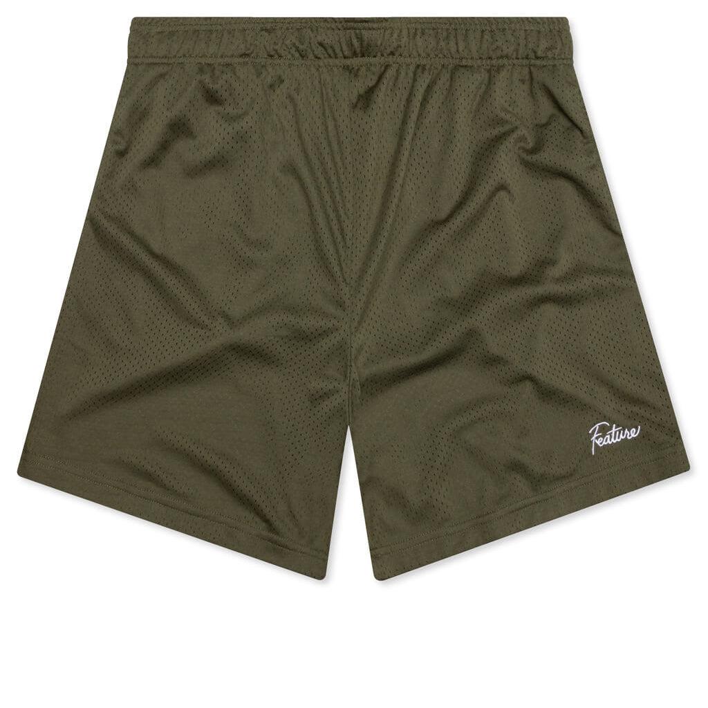 Whether they’re being worn on the street or at the gym, the FEATURE West Shorts are constructed of a breathable polyester and athletic mesh construction. Inspired by basketball, the shorts are made for a standard fit and are smooth to the touch. The side seam pockets at the front of the shorts add a functional aesthetic, while the single welt pocket to the rear incorporates a custom zipper pull. The inner drawcord at the waistband allows for an adjustable fit. A satin-stitched embroidered FEATURE logo on the left thigh completes the rest of the look. Exclusive to FEATURE Standard fit Breathable polyester/athletic mesh construction Viscose lining Side seam pockets Single rear welt pocket Custom zipper pull Inner drawcord waistband Satin-stitched embroidered FEATURE logo Style No: FEAMSHORTS-OLV