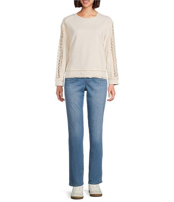 Westbound Lace Inset Long Sleeve Crew Neck Knit Top