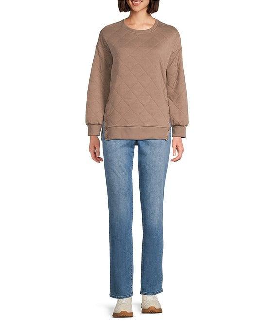 Westbound Petite Size Crew Neck Button Detail Long Sleeve Quilted Pullover