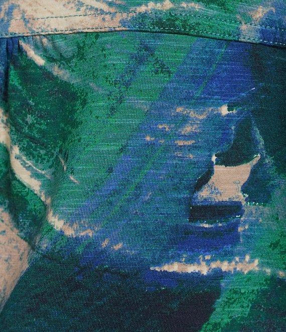 Westbound Petite Size Larkspur Blue Sweeping Wave Short Sleeve Crew Neck Slub Knit Top