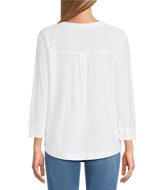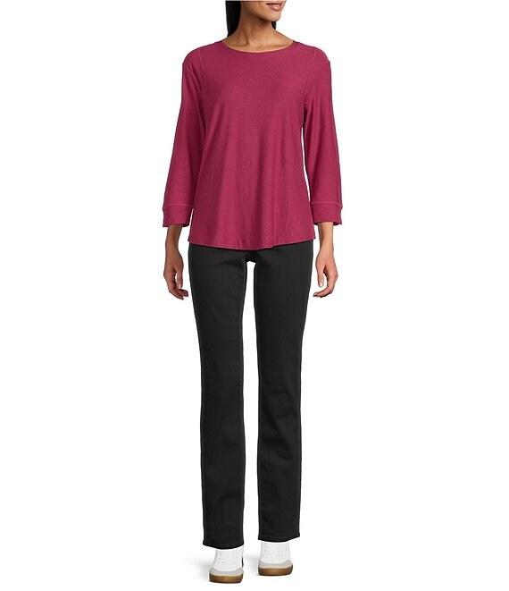 Westbound Petite Size Solid 3/4 Sleeve Knit Crew Neck Top