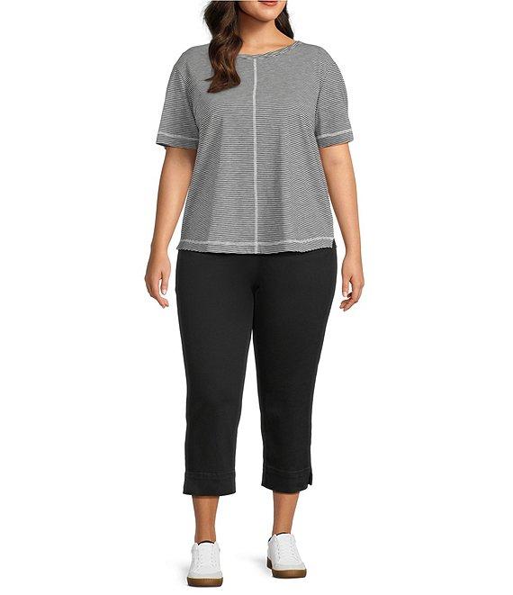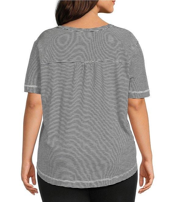 Westbound Plus Size Nautical Stripe Short Sleeve Slub Knit Crew Neck Top