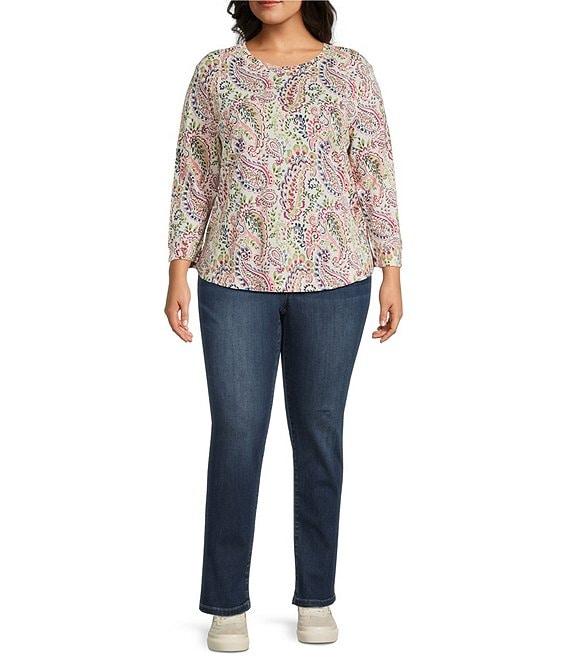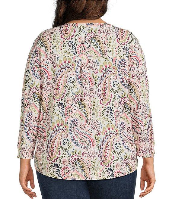 Westbound Plus Size Paisley Print 3/4 Sleeve Knit Crew Neck Top