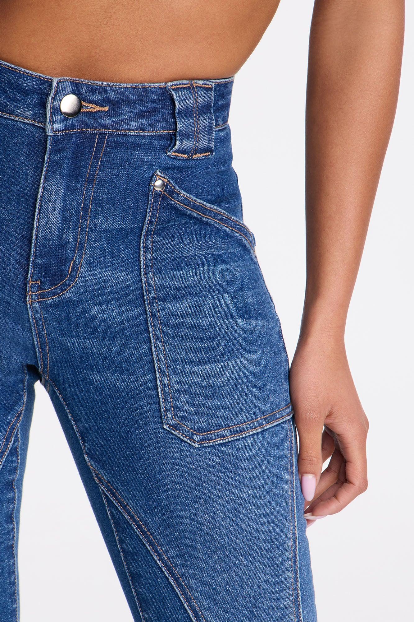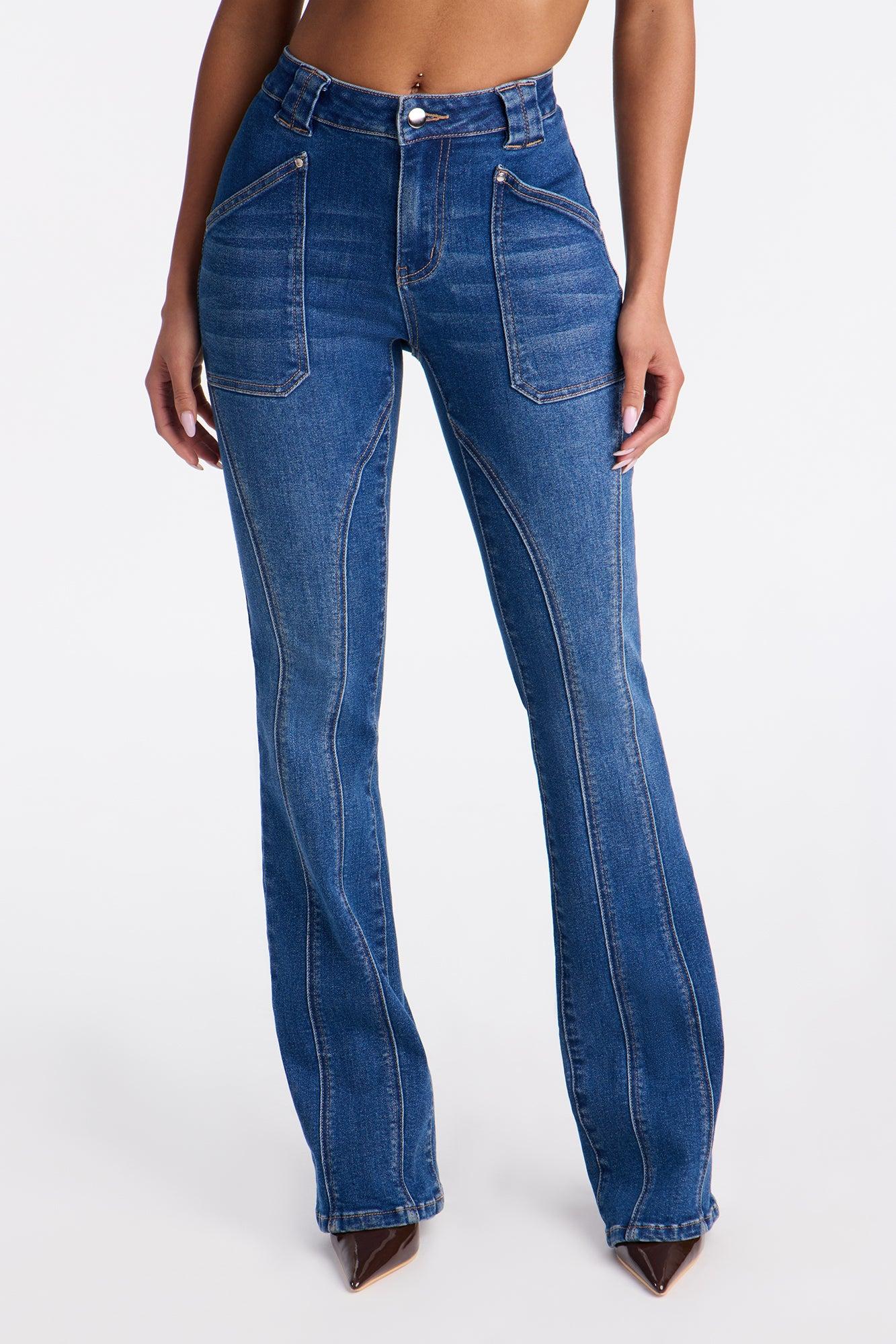 Available In Dark Wash. Bootcut Jean Front Patch Pockets Back Pockets Seaming 9" Low Rise 34" Inseam Medium Stretch Disclaimer: Due To The Specialized Wash, Each Garment Is Unique. 70% Cotton 28% Polyester 2% Spandex Imported California Proposition 65WARNING: Cancer and Reproductive Harm - www.P65Warnings.ca.gov.