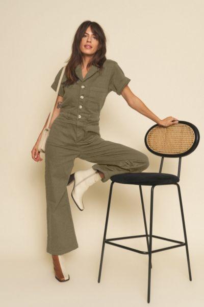 When you want to look good with minimal effort. The Logan Jumpsuit has short-sleeves and a button closure with the perfect wide leg fit. Throw her on when a Thursday feels like a Monday and you dont know what to wear. Content + Care -99% Organic Cotton 1% Elastin -For best results, hand wash in cold water with delicate soap and lay flat to dry. -Made in China Size + Fit -Chest 33 Waist 26 Inseam 29.25 Rise 10.5 Hip 37 -Chest 35 Waist 28 Inseam 29.25 Rise 11 Hip 39 -Chest 37 Waist 30 Inseam 29.25 Rise 11.5 Hip 41 -Chest 39 Waist 32 Inseam 29.25 Rise 11.5 Hip 43 -Chest 41 Waist 34 Inseam 29.25 Rise 12 Hip 45 Whimsy and Row Whimsy + Row Logan Organic Cotton Jumpsuit in Dark Green, Womens at Urban Outfitters