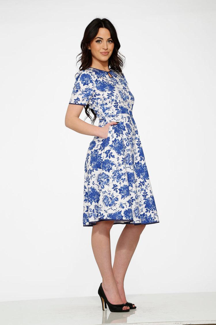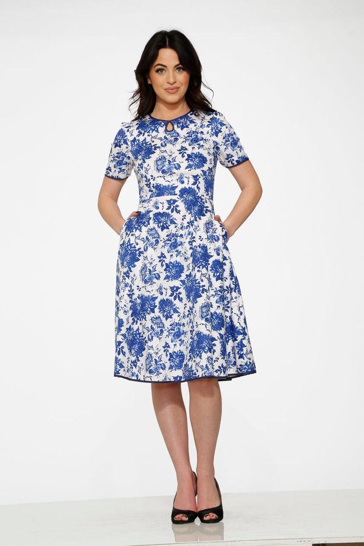 Graceful and timeless, the White & Blue China doll Swing Dress by Orchid Bloom features a delicate blue-on-white print inspired by classic porcelain motifs. With its flattering swing silhouette and vintage charm, it’s perfect for afternoon teas, garden parties, or adding a refined touch to your everyday look.Crafted from a soft cotton-spandex blend, it offers gentle stretch for comfort and ease. Complete with a center back zipper and side pockets, this dress blends elegance with practicality.Fabric Composition97% Cotton, 3% SpandexFabric provides stretchLength: 41"ImportedDesign DetailsCenter back zipperSide pockets