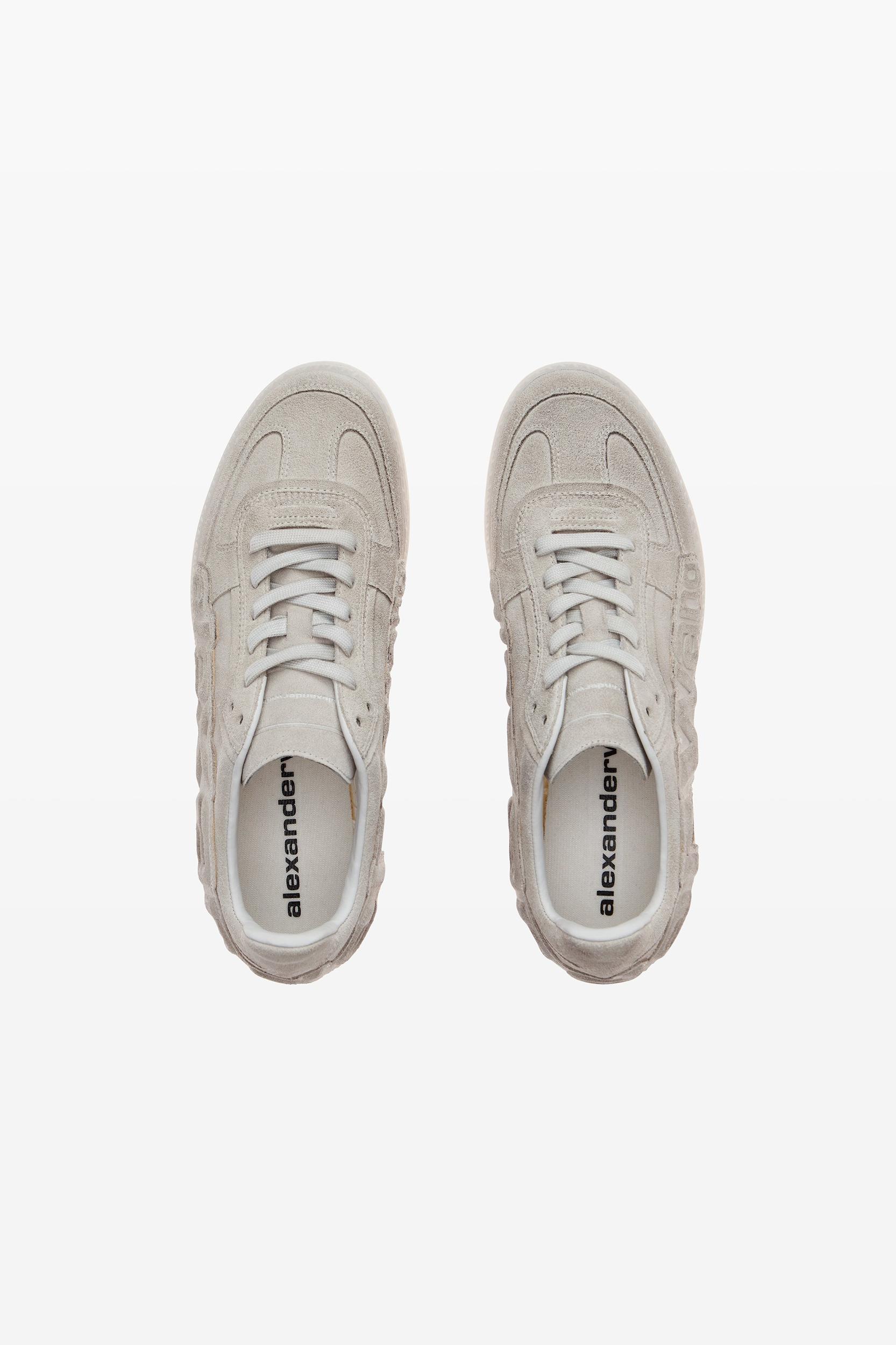 constructed with a wax-finished calf suede upper and sheep nappa lining, these white low-top sneakers sit on a rubber outsole.