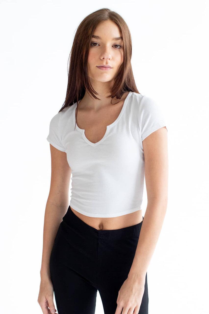 White Notched Neck Crop T-Shirt