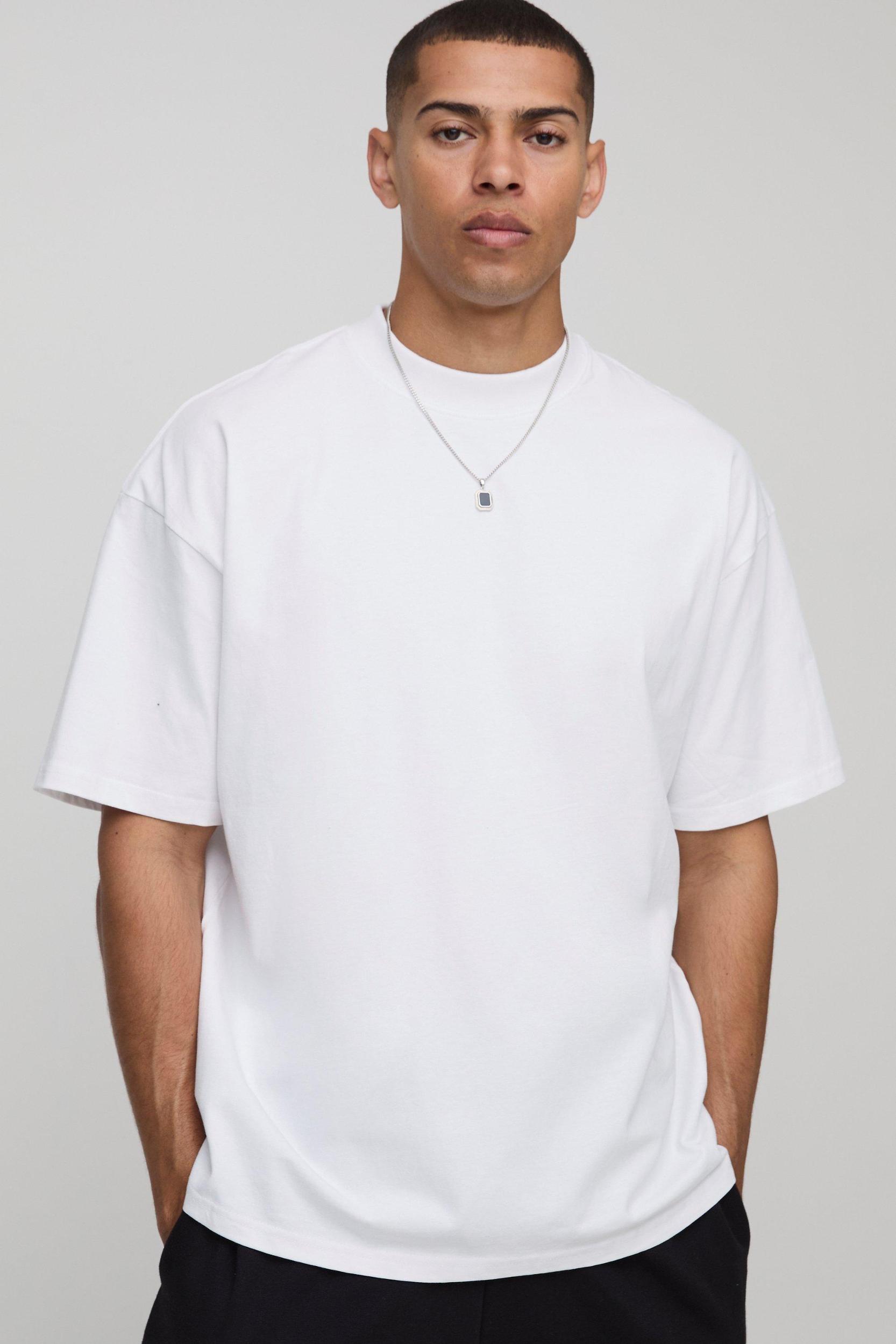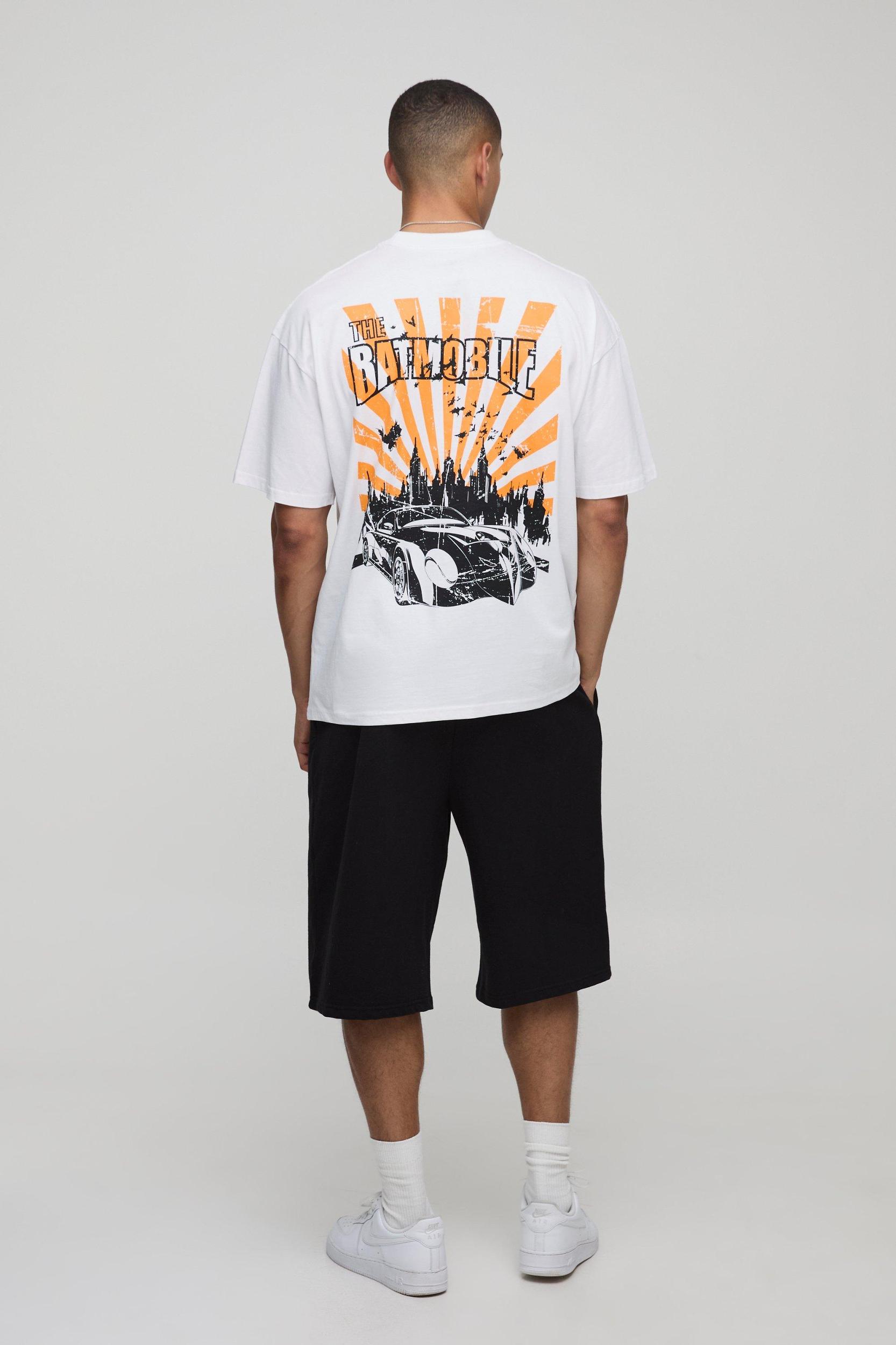 White Oversized Extended Neck Batmobile License T-Shirt | boohooMAN USA