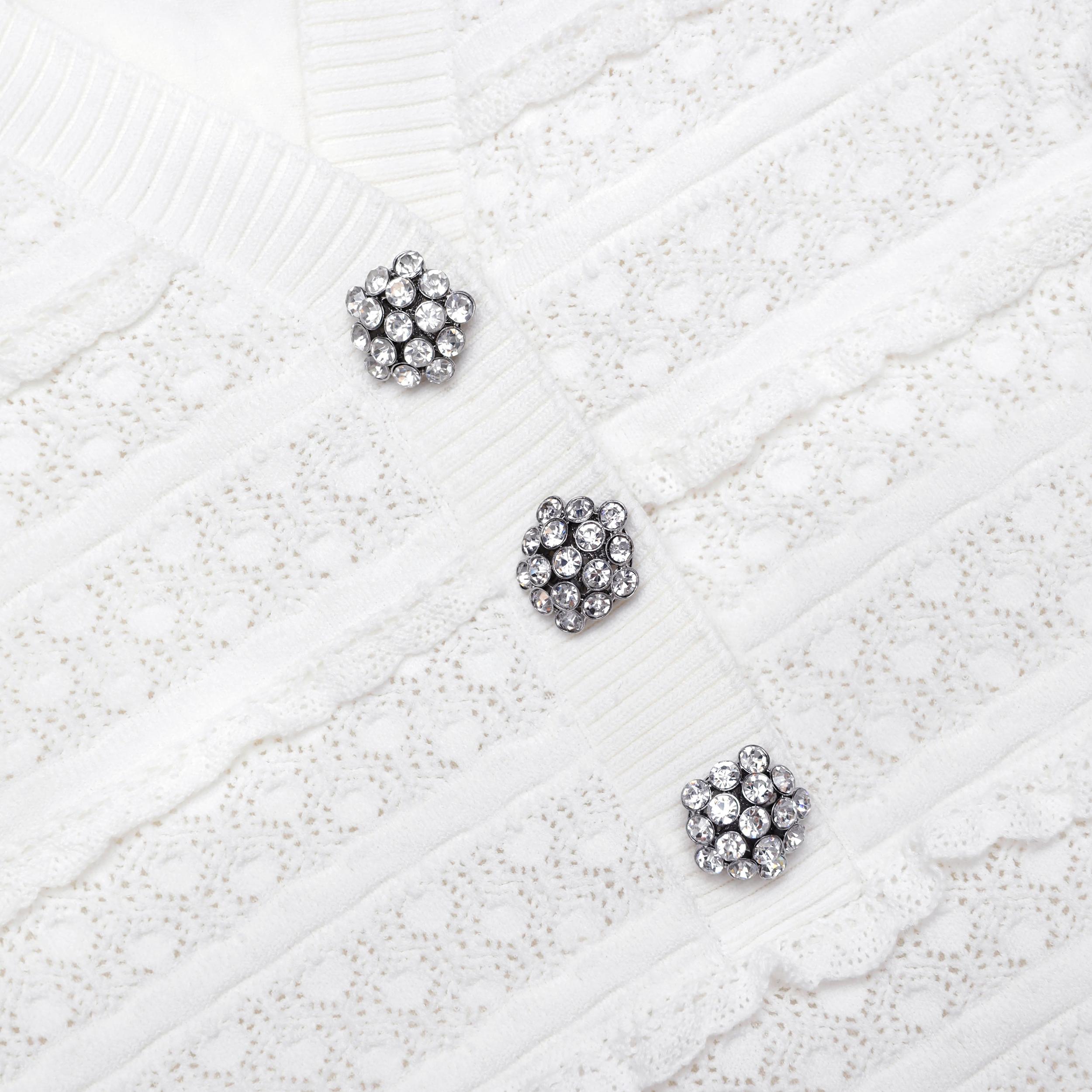Adorned with textural ruffles, this knit mini dress exudes cosy charm. Removable shoulder pads and diamanté buttons add chic detail whilst the skater skirt plays well with flats and heels alike.True to sizeFabric has stretch Button closure down frontRemovable shoulder padsFunctional pocketsModel is 5ft10/178cm and wears a size S