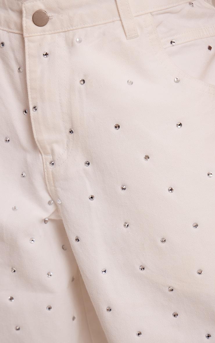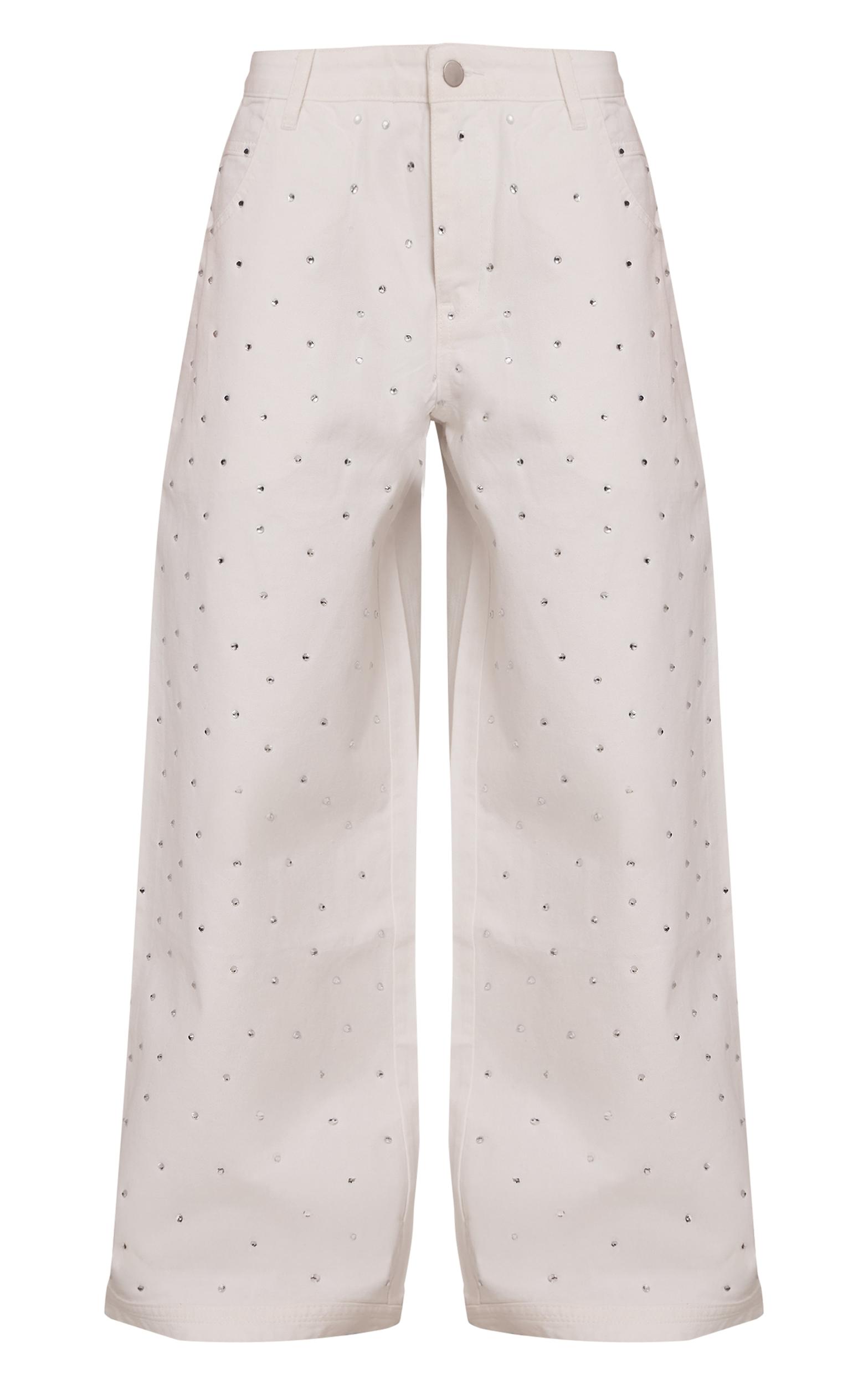 These white relaxed low rise diamante wide leg denim jeans combine a relaxed fit with sparkling diamante detailing along the seams, adding subtle glamour to everyday denim. The low-rise fit and flowing wide leg create a comfortable yet stylish silhouette, perfect for pairing with fitted tops, cropped jumpers, or elegant blouses. Dress up with heels or keep it casual with sneakers or sandals. The crisp white denim ensures a fresh, polished aesthetic, while the sparkling accents elevate casual looks for brunches, evening outings, or weekend events, making them a versatile statement piece in any wardrobe.Length approx 76cm/30inch (Based on sample size US 4)Model wears size UK 8/ EU 36/ AUS 8/ US 4Model Height - 5ft 9inchp]:!mb-4inch>Brand: PrettyLittleThingCategory: DenimProduct type: Wide Leg JeansColor: WhiteMaterial: Rigid DenimOccasion: Evening