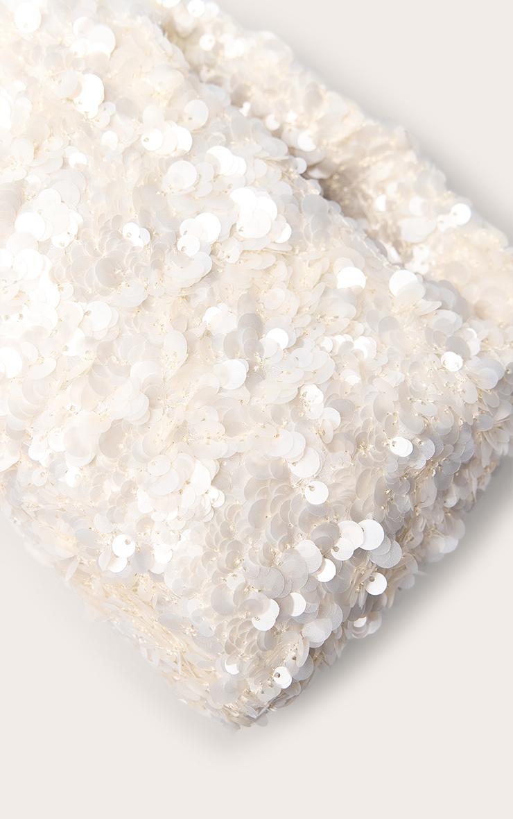 The perfect finishing touch for after-dark allure, the white sequin handbag presents a modern silhouette, entirely adorned with shimmering sequins. This artful piece, featuring a sleek top handle, radiates confident elegance. Pair it with a refined maxi dress or sharp tailored pants, ensuring your ensemble feels complete with sophisticated closed toe heels and a touch of delicate accessories. It’s the definitive statement for an unforgettable evening. Approx Height: 10cm/4inch Approx Width: 20cm/8inch Approx Depth: 5cm/2inchp]:!mb-4inch>Brand: PrettyLittleThingCategory: AccessoriesProduct type: HandbagColor: WhiteMaterial: SequinOccasion: Evening