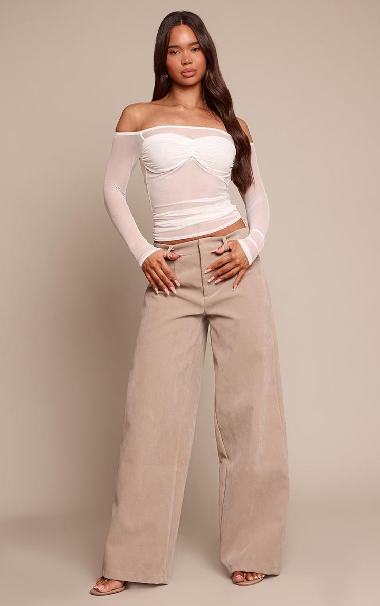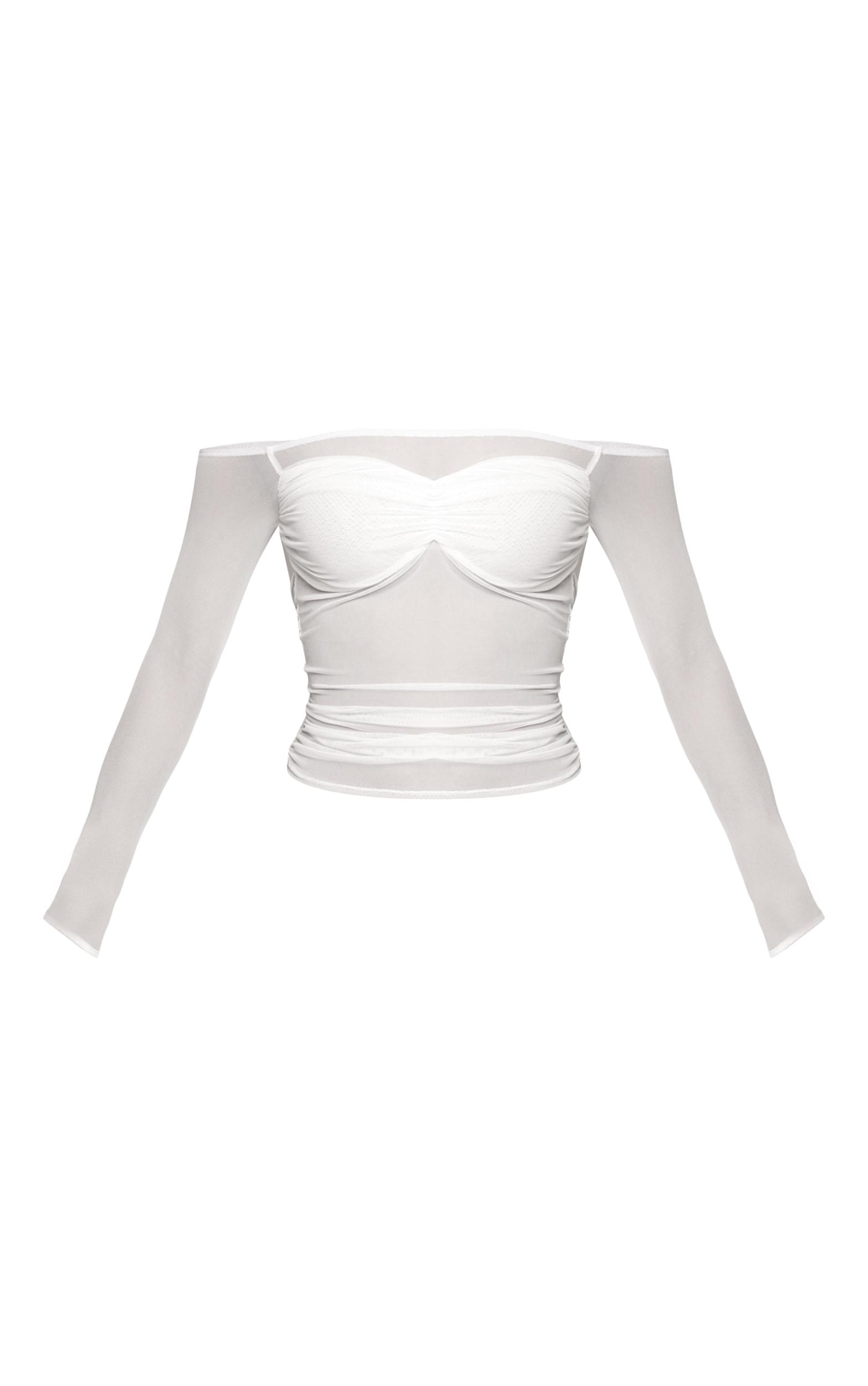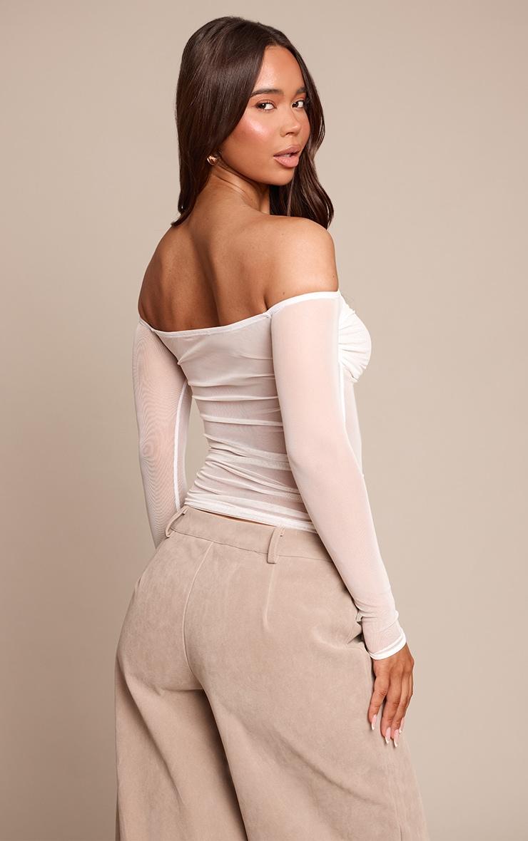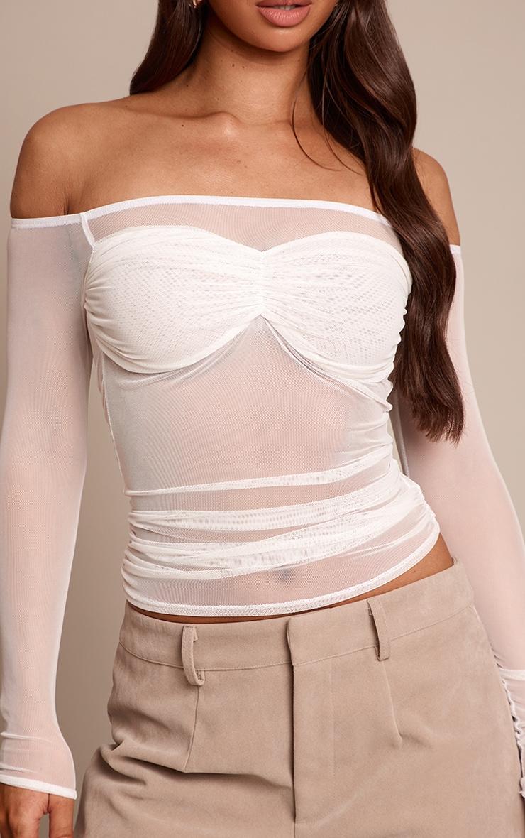 Channel artful allure with the white sheer mesh bust panel bardot long sleeve top. Its sculpted design features a chic bardot neckline, sheer mesh long sleeves, and a distinctive bust panel. An essential for elevated evening plans or an unforgettable after-dark moment. Complete the look with tailored pants, sharp pointed heels, and subtle hoops.Length approx 34.5cm/13.5inch (Based on sample size US 4)Model wears size UK 8/ EU 36/ AUS 8/ US 4Model Height - 5ft 8inchp]:!mb-4inch>Brand: PrettyLittleThingCategory: TopsProduct type: Bardot TopColor: WhiteMaterial: MeshDesign: PlainNeckline: BardotSleeves: LongOccasion: Evening