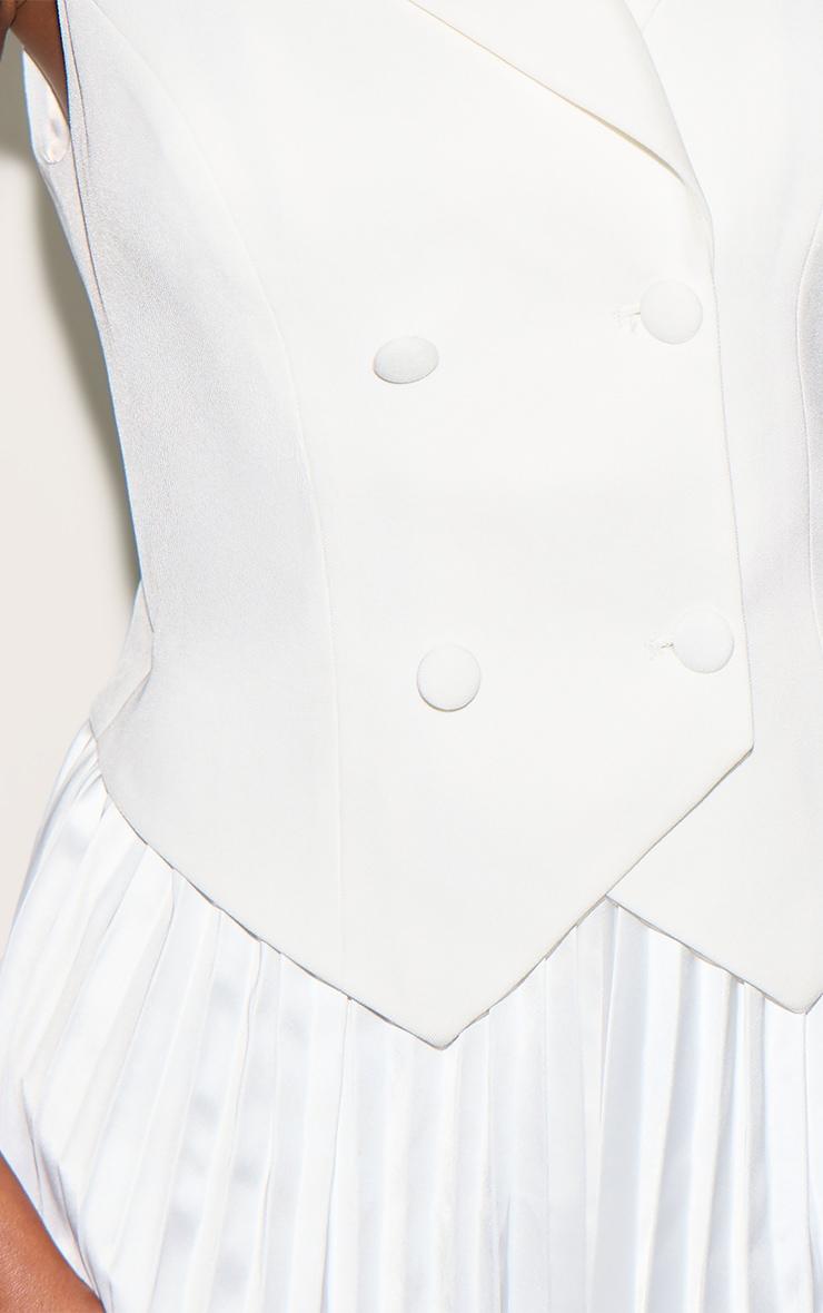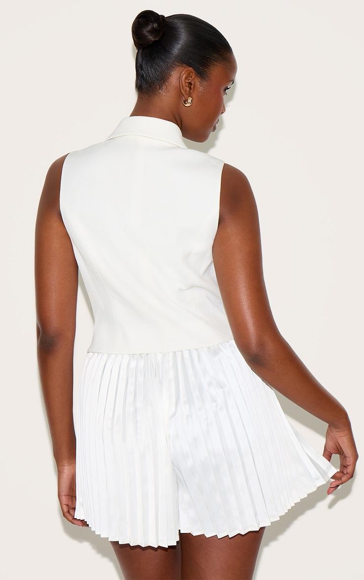 This white tailored vest detail pleated skort romper is the versatile piece you need this season, combining elevated design with a classic silhouette. Designed to take you from the office to your evening plans, style this piece with strappy kitten heels and your favorite understated jewelry.Length approx 81.5cm/32inch (Based on sample size US 4)Model wears size UK 8/ EU 36/ AUS 8/ US 4Model Height - 5ft 9inchp]:!mb-4inch>Brand: PrettyLittleThingCategory: DressesProduct type: Skort PlaysuitColor: WhiteMaterial: Tailored WovenDesign: PlainNeckline: V NeckSleeves: SleevelessOccasion: Evening