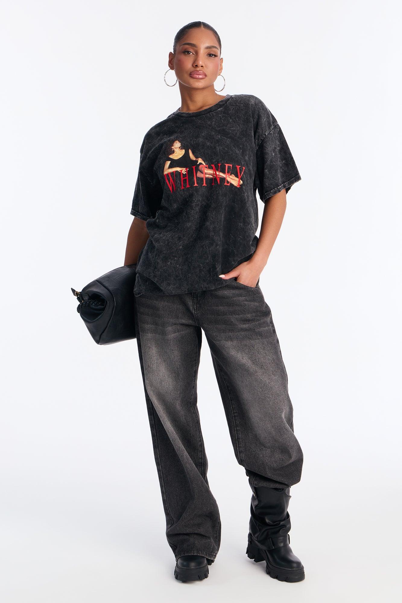 Whitney Houston Laying Pose Washed Tee - Black Wash Female
