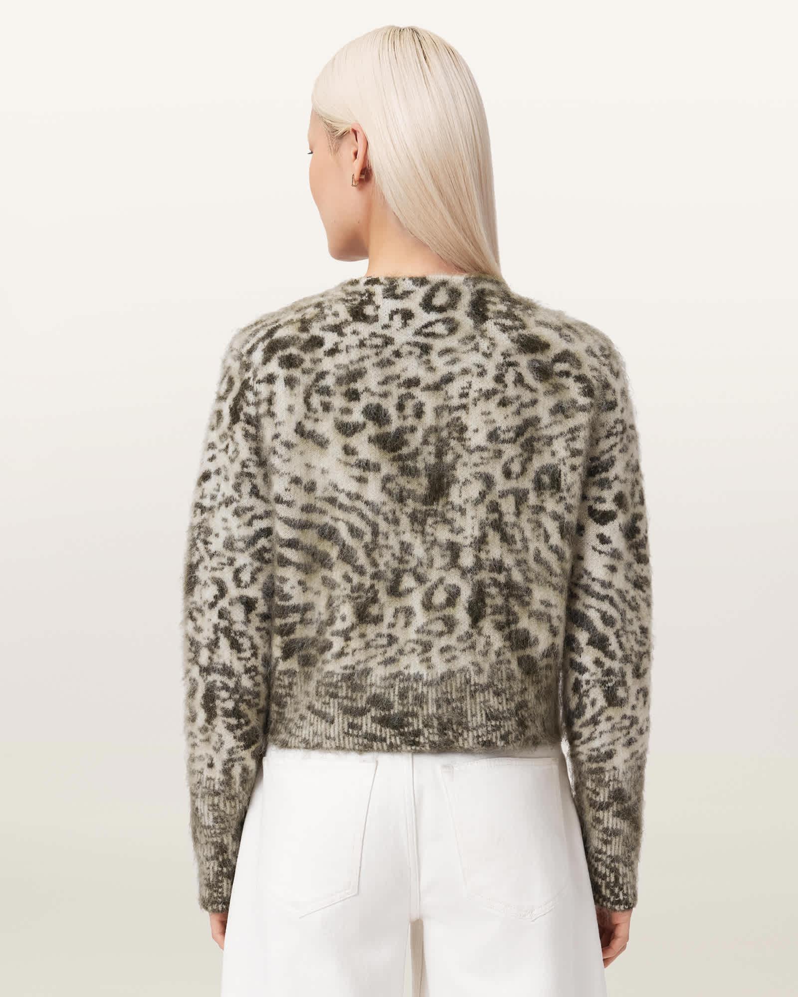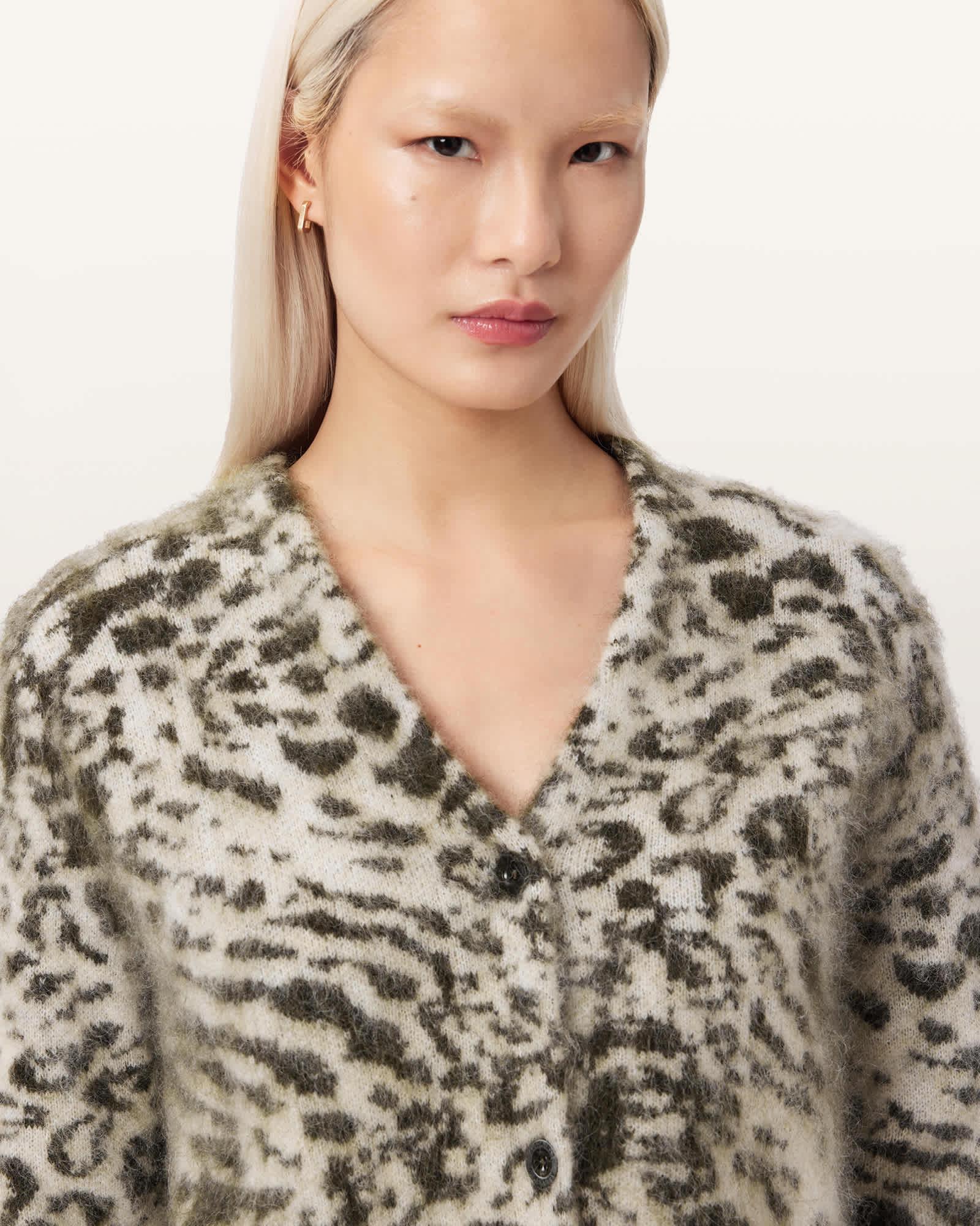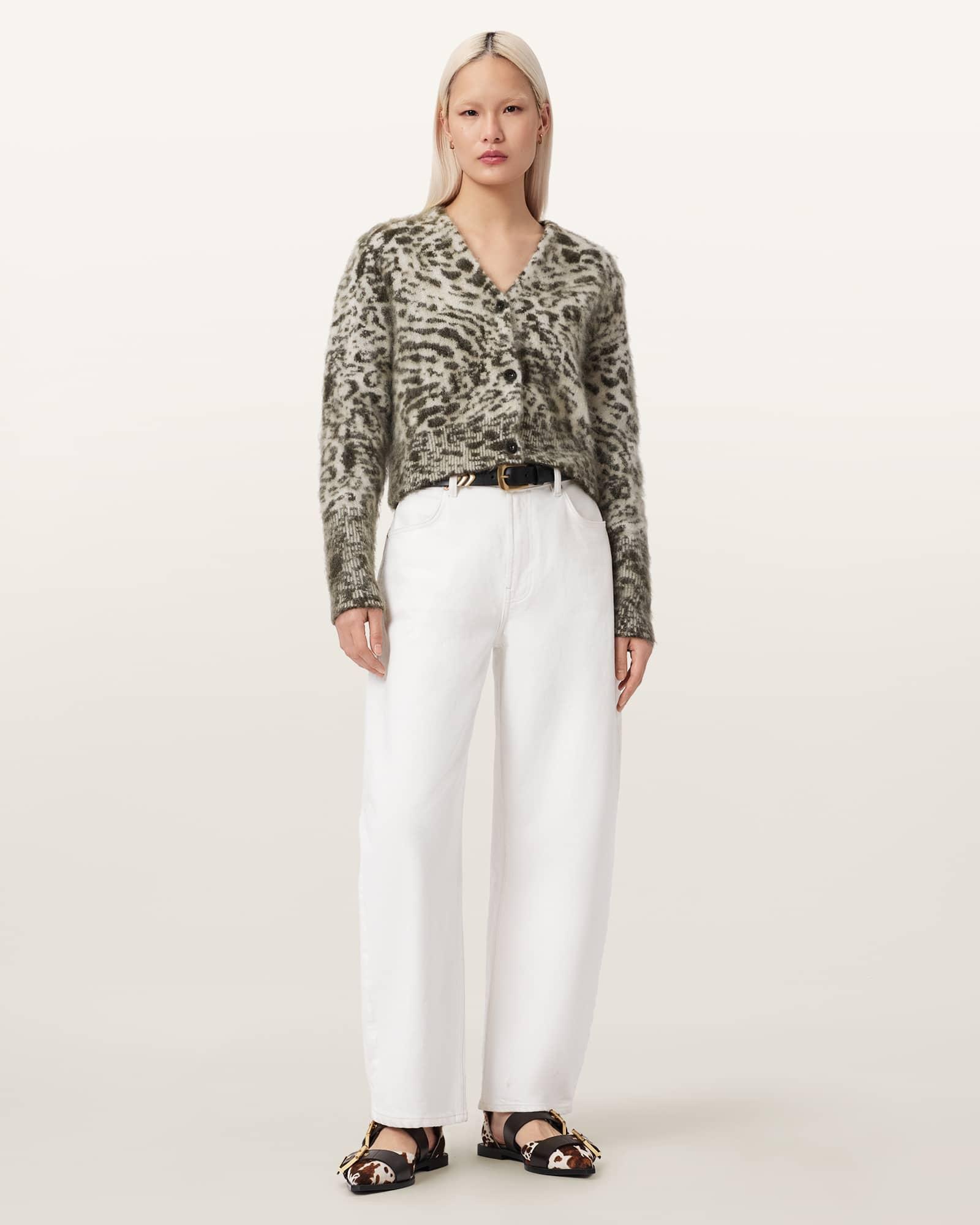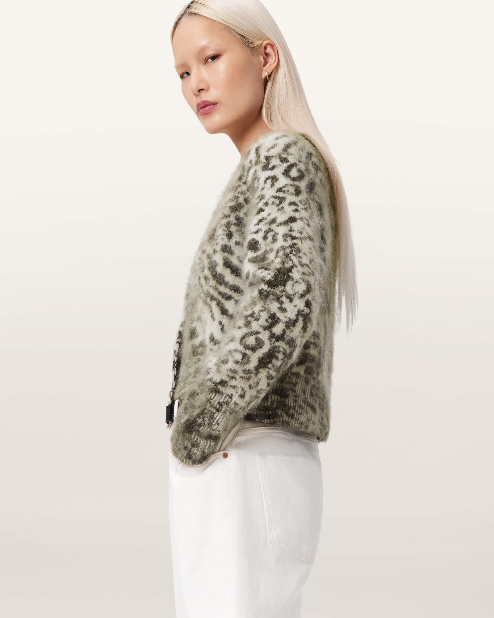 Wick Amur Jacquard Cardigan CHALK WHITE/GREEN | ALLSAINTS US