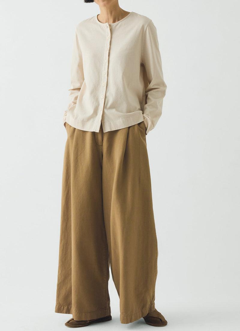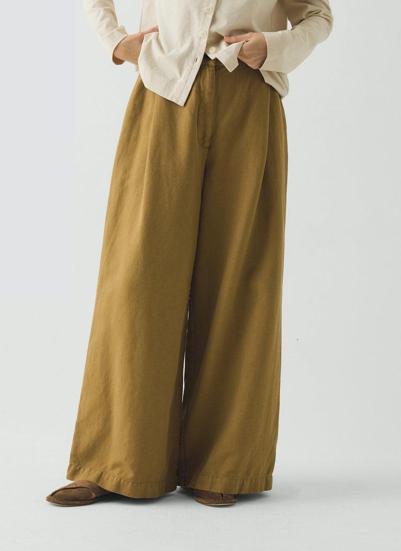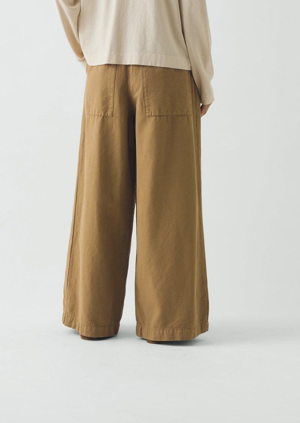 Sitting on the waist, our garment-dyed pants are cut to an easy fit with wide legs. Made from cotton and linen-blend twill with a comfortable back-elasticated waist and finished with back patch pockets.