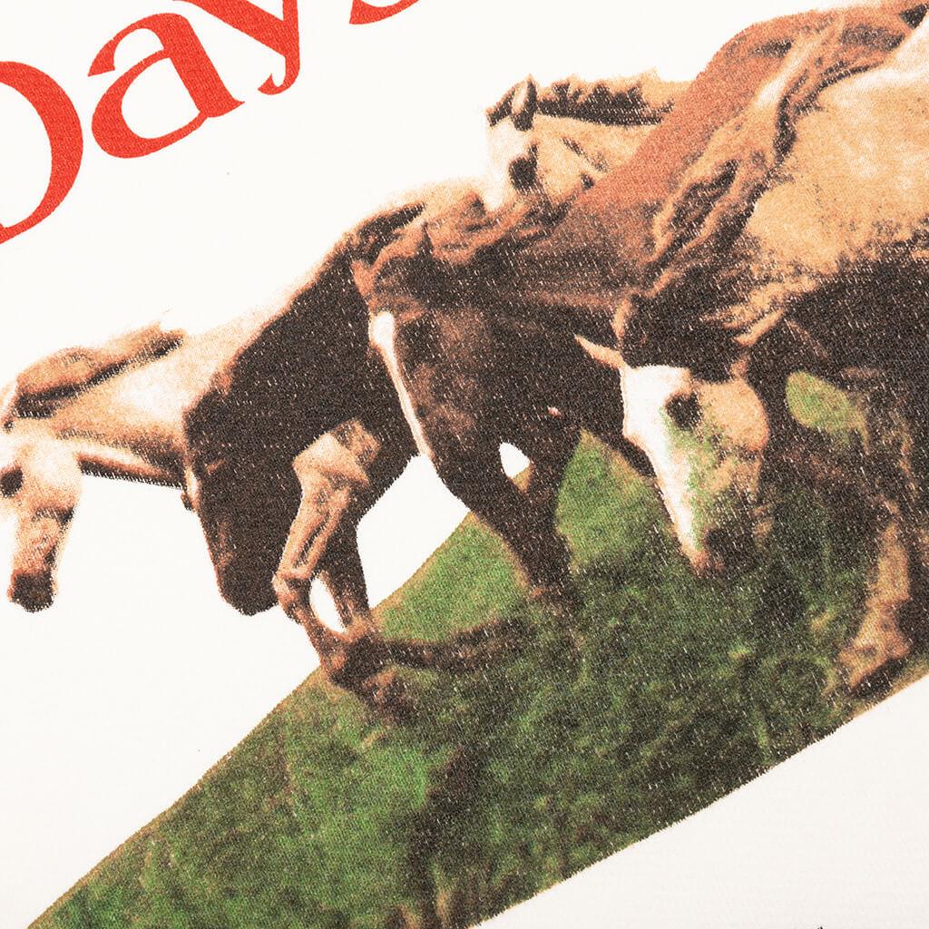 The Wild Horses Crewneck in Bone brings together classic style and comfort in a 100% cotton fabric knit. Cut and sewn with a vintage wash finish, this pre-shrunk crewneck offers a soft, worn-in feel. Ribbed cuffs and hem add structure, while a bold screen-printed graphic on the front captures attention, making it a standout piece for any casual look 100% Cotton Fabric knit Cut & sewn Vintage wash finish Pre shrunk Ribbed cuffs & hem Screen printed graphic on front Style No: 02B-10-050-BONE