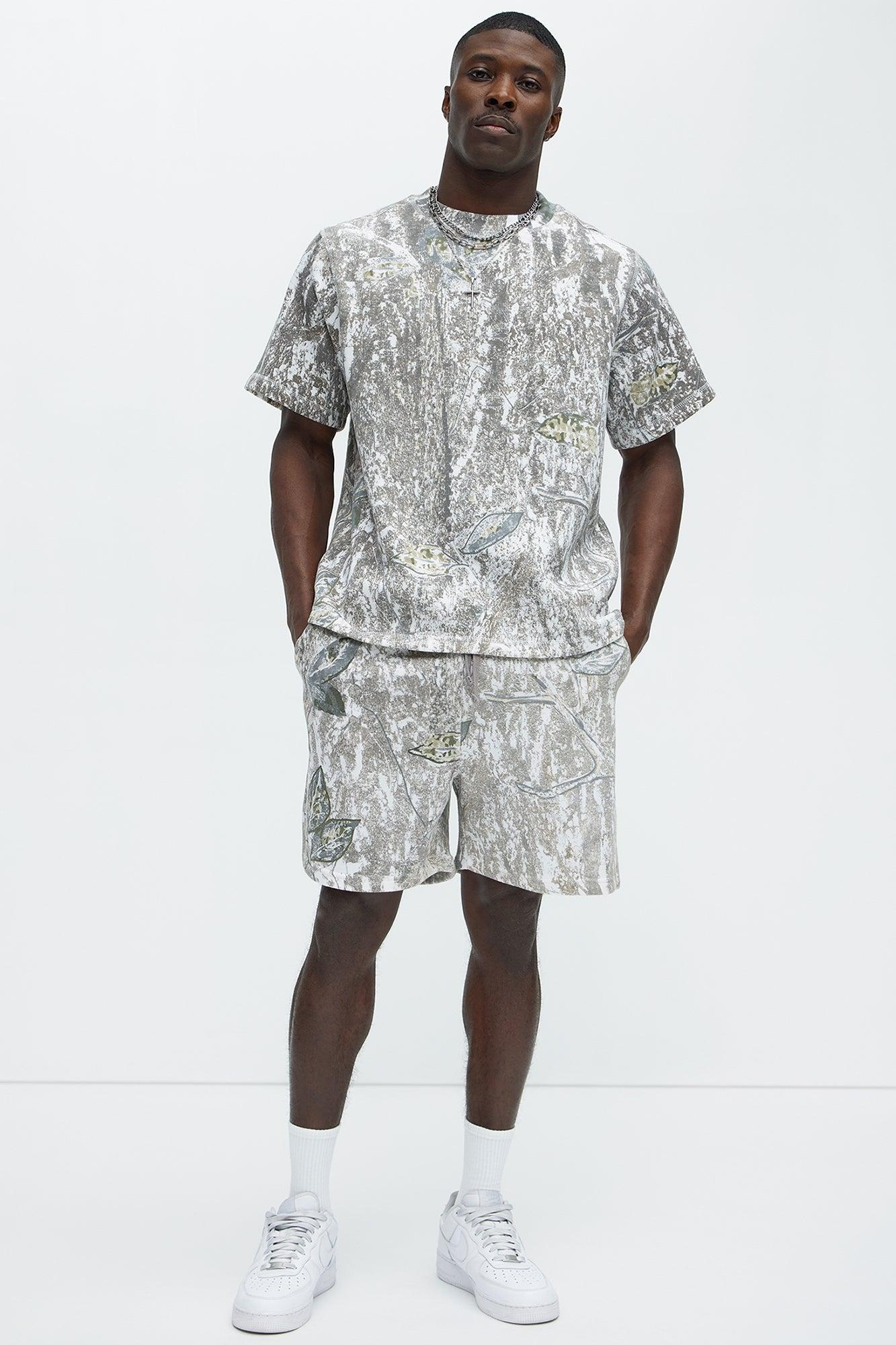 Available In Camouflage. Crew Neck Short Sleeves Pair With "Wilderness Camo Fleece Shorts" 60% Cotton 40% Polyester Imported