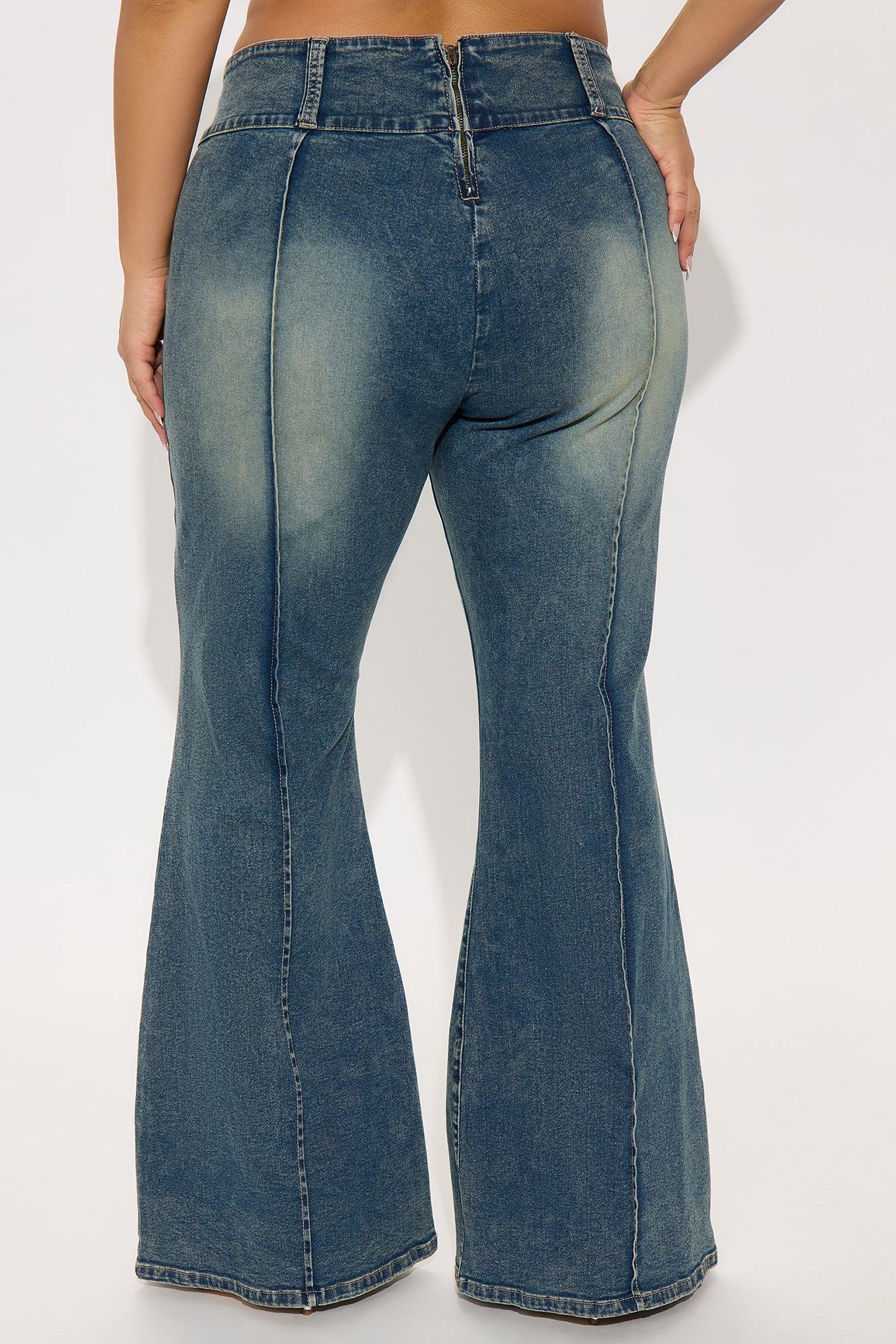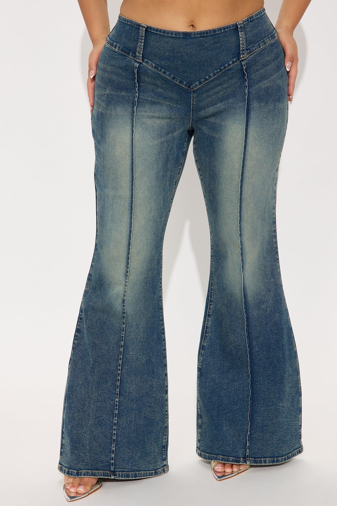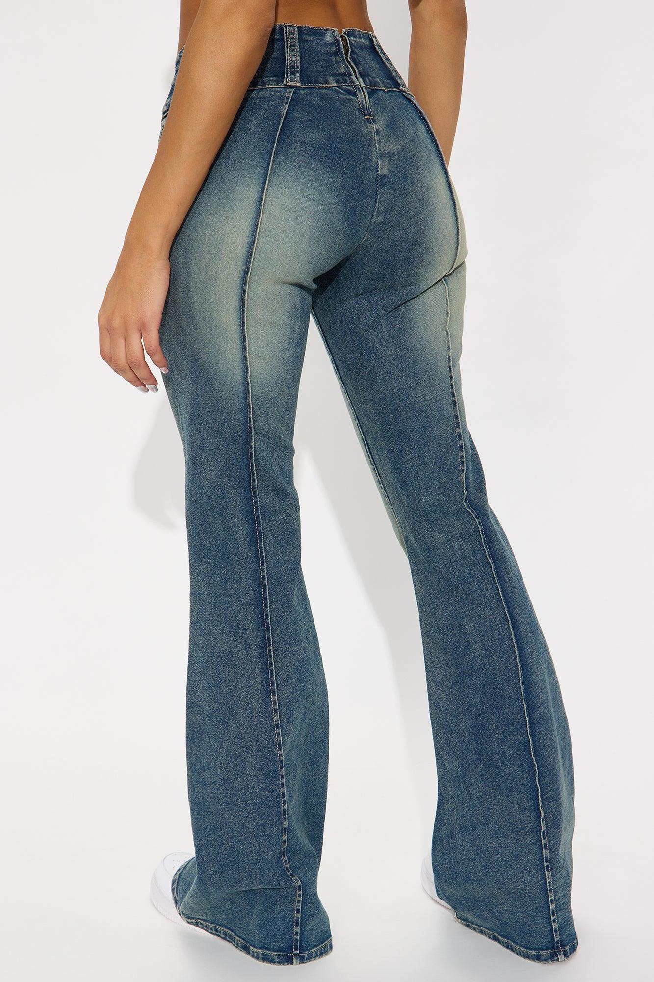 Available In Dark Wash. Flare Jean Tinted Pintuck Detail No Pockets Back Zipper Closure 8.5" Low Rise 34" Inseam Medium Stretch Disclaimer: Due To The Specialized Wash, Each Garment Is Unique. 71% Cotton 27% Polyester 2% Elastane Imported