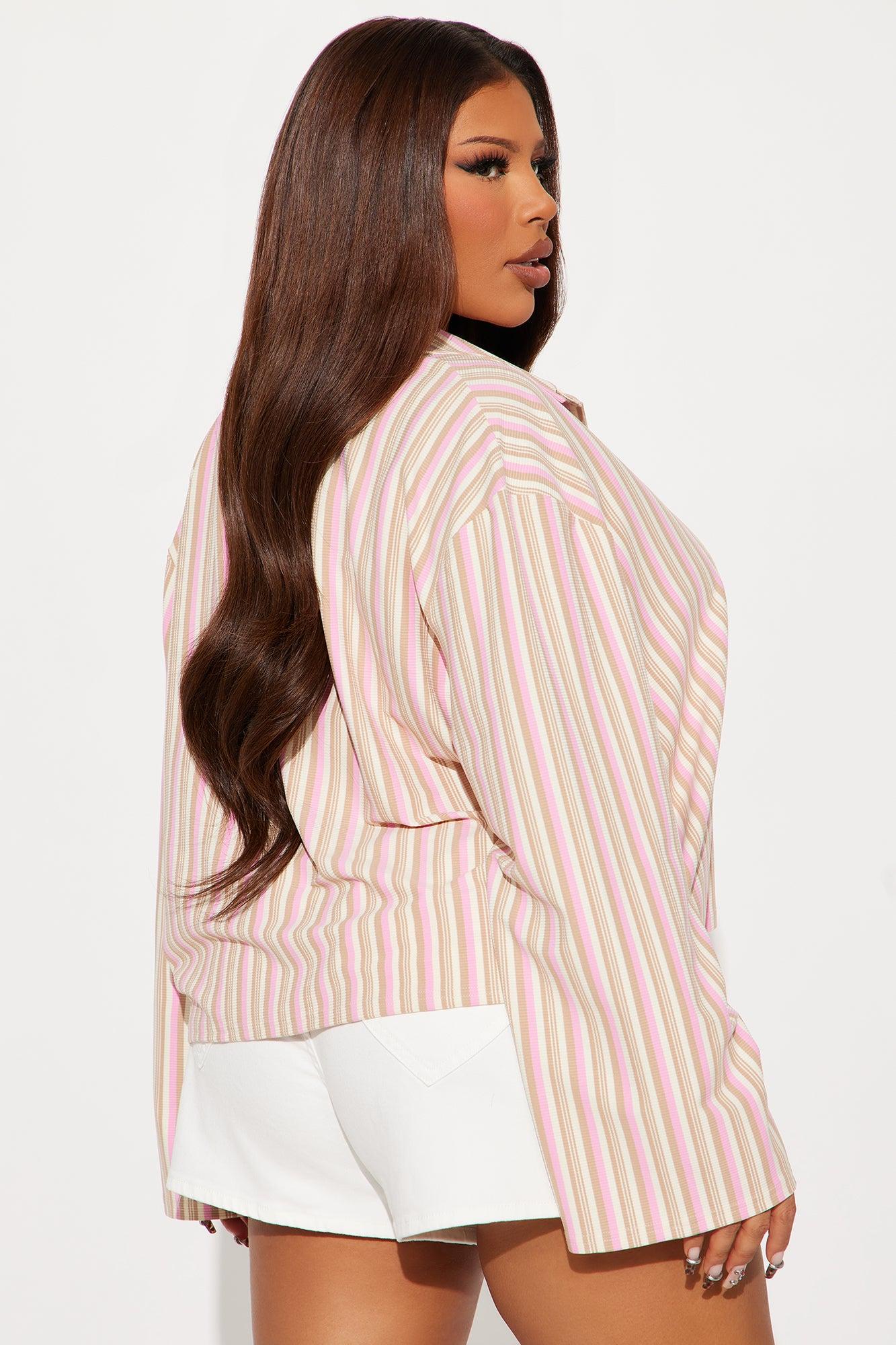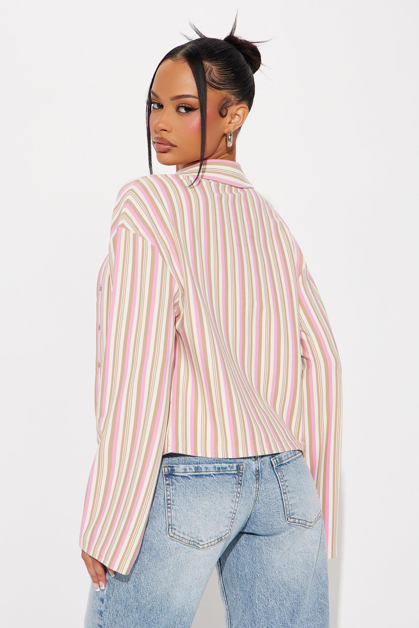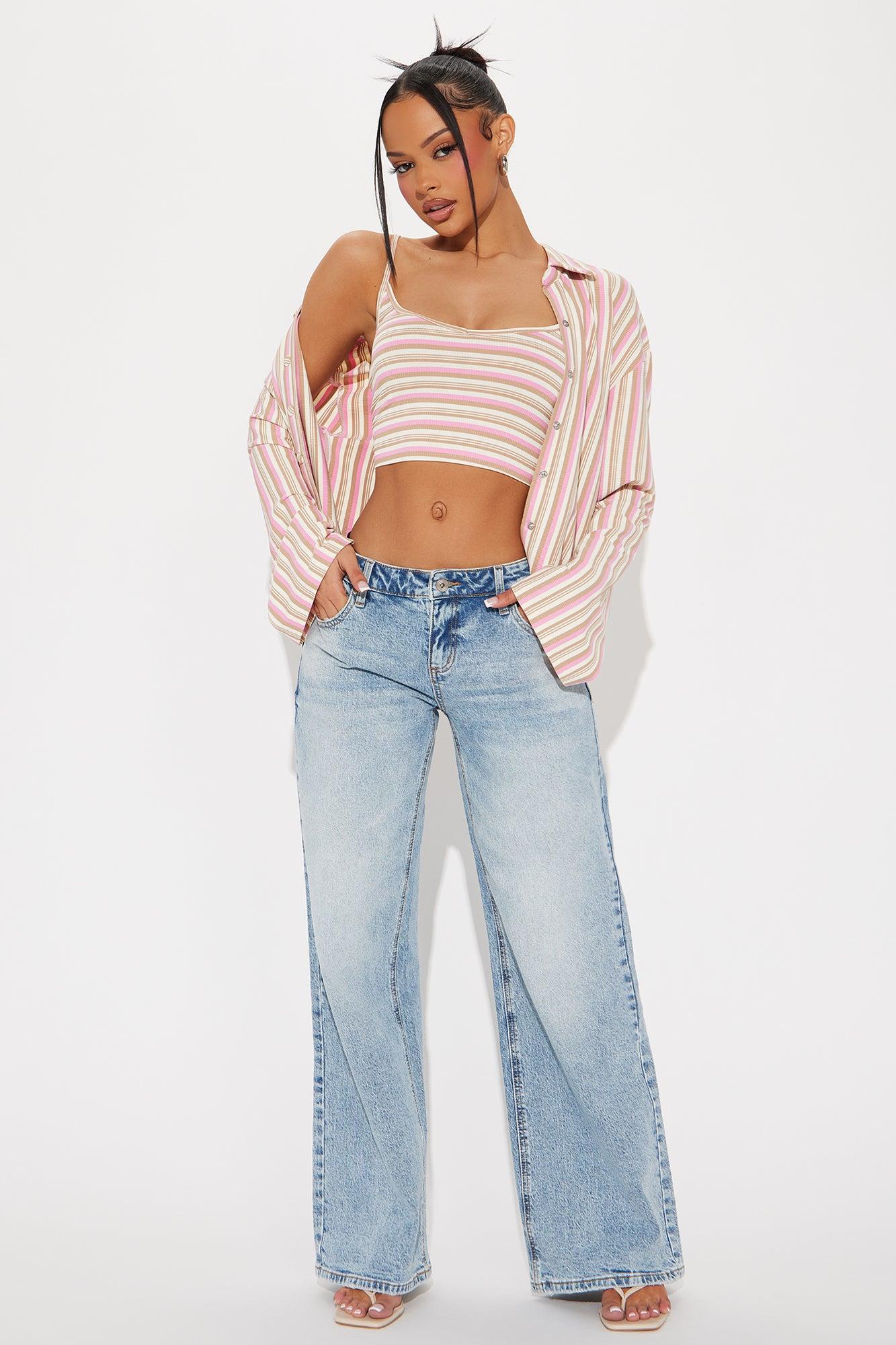 Willow Stripe Tank And Cardigan Top - Pink/combo