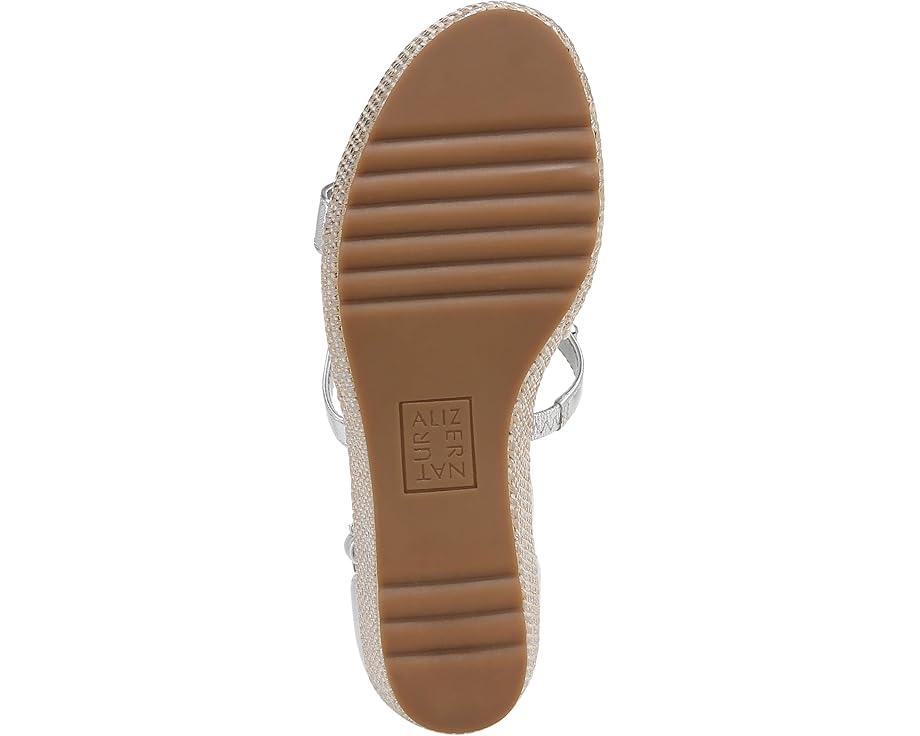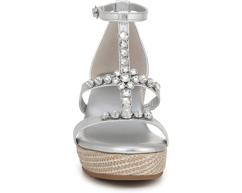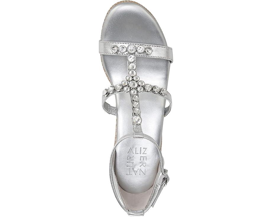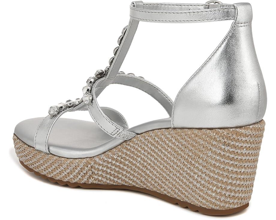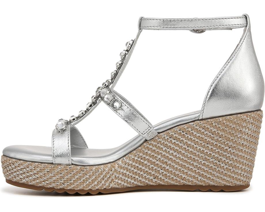Get a next-level gleaming party look donning the Naturalizer® Serena Ankle Straps. This wedge sandals feature sparkling stone embellishments on the straps for a splashy touch, contour+ comfort technology for a premium fit, and synthetic and metallic upper.