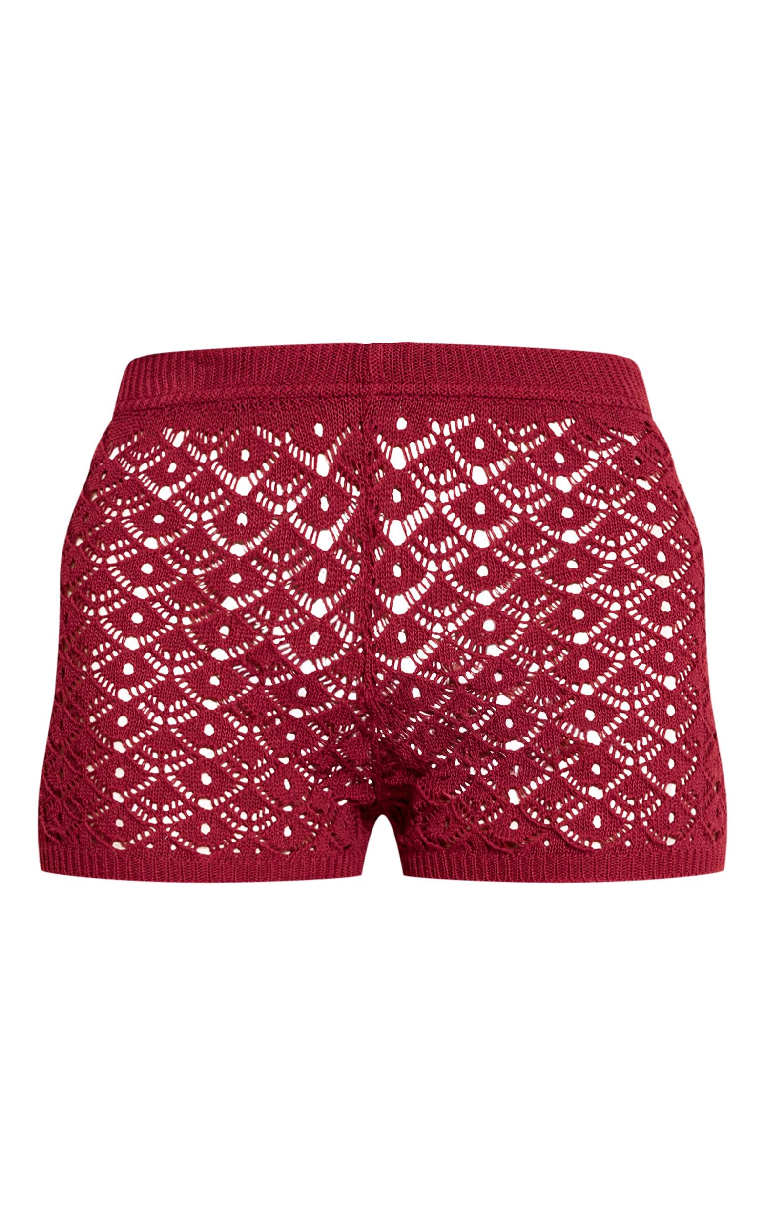 Stay cool in the wine crochet knit mini shorts. Made from a wine crochet knit material with a soft texture and mini fit, they’re ideal for warm-weather days. Pair with the matching maxi cardigan and heeled sandals or relaxed tee for laid-back styling. Length may vary due to crochet knitLength approx 33cm/13inch (Based on sample size S)Model wears size SModel Height - 5ft 7inchp]:!mb-4inch>Category: KnitwearProduct type: ShortsColor: Dark WineMaterial: Crochet KnitOccasion: Day