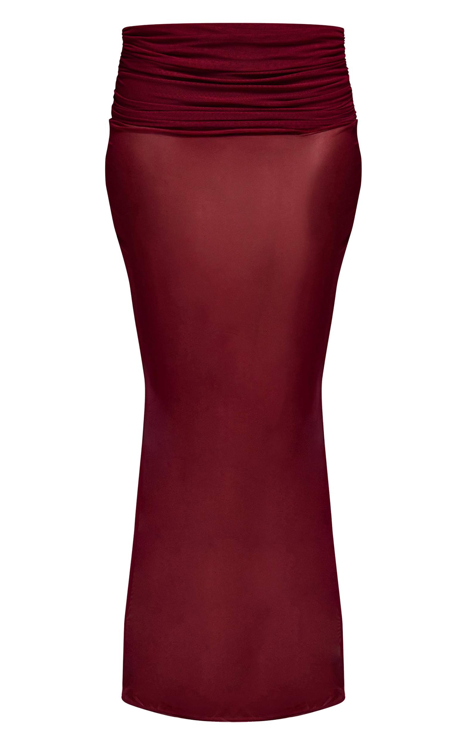 Own your evening agenda with a standout piece, the wine mesh extreme fold over maxi skirt. This design, rendered in a rich wine hue, features a distinctive ruched fold-over waist that gracefully descends into a sheer maxi length, crafting a sophisticated silhouette for discerning nights. Pair this striking skirt with a sleek bodysuit or a minimal bralette for a cohesive aesthetic, grounding the look with sophisticated mule heels and finishing with a delicate gold ring. It’s an ensemble designed to command attention with effortless confidence.Length approx 108cm/42.5inch (Based on sample size US 4)Model wears size UK 8/ EU 36/ AUS 8/ US 4p]:!mb-4inch>Brand: PrettyLittleThingCategory: BottomsProduct type: Maxi SkirtColor: WineMaterial: MeshDesign: PlainOccasion: Evening
