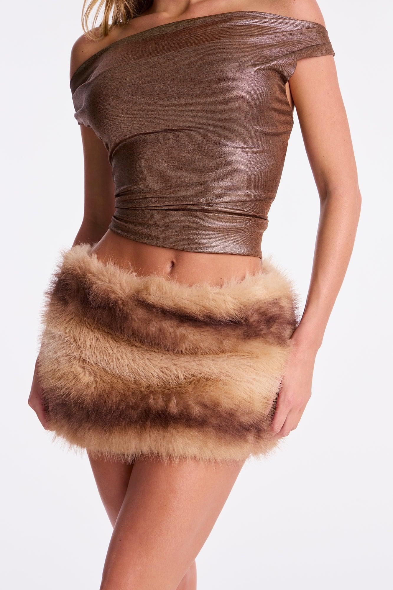 Winter Chill Faux Fur Micro Mini Skort - Brown/combo Female
