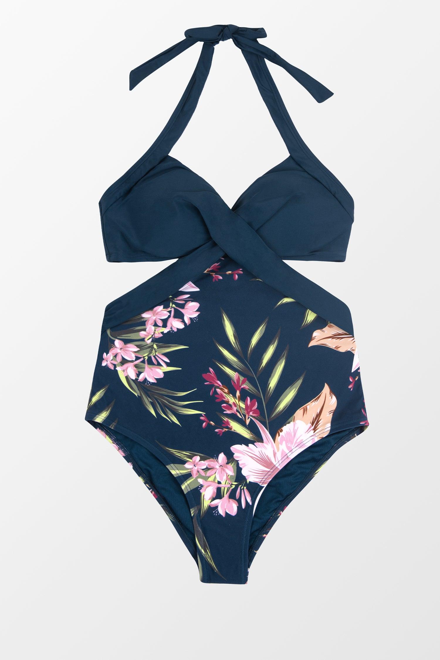 The Winter Fantasy Wrap Front Cutout One Piece Swimsuit is sure to make a beachside statement. The blue solid with floral print creates a vibrant contrast that grabs attention where you go. An array of crisscross straps at the back lends a stylish look to this one-piece swimsuit. Product Code: ASL0360EDModel is wearing a size SHeight: 5' 4", Bust: 34 in, Waist: 26 in, Hips: 37 inFeatures: Sweetheart Wrap front Cutout Push up molded cups Halter tie Back hook Classic coverage Pattern: Solid, Blue, Print, Floral, Winter Fantasy Material & Care: Regular wash Materials: 80% Chinlon, 20% Spandex Lining: 92% Polyester, 8% Spandex XS S M L XL XXL USA 0/2 4/6 8/10 12/14 16/18 20 AU 8 10 12 14 16 18 size chart:please allow 0.4"-0.8" differs due to manual measurement XS S M L XL XXL USA 0/2 4/6 8/10 12/14 16/18 20 AU 8 10 12 14 16 18 BUST 31.8-35 33.5-36.6 35-38 37-40.5 38.5-42.5 40.1-44 WAIST 24-27 25.5-28.7 27.2-30.3 29-32.6 29-32.6 32.3-36.2 LENGTH HIP 34.2-37.4 35.8-39 37.4-40.5 39.3-43 41-44.8 42.5-46.4 Swim Top Sizing Guide XS S M L XL XXL 30A 32C 34C 36C 38D 38DD 30B 32D 34D 36D 40B 40D 32A 34A 36A 38A 40C 40D 32B 34B 36B 38B 40D 40DD
