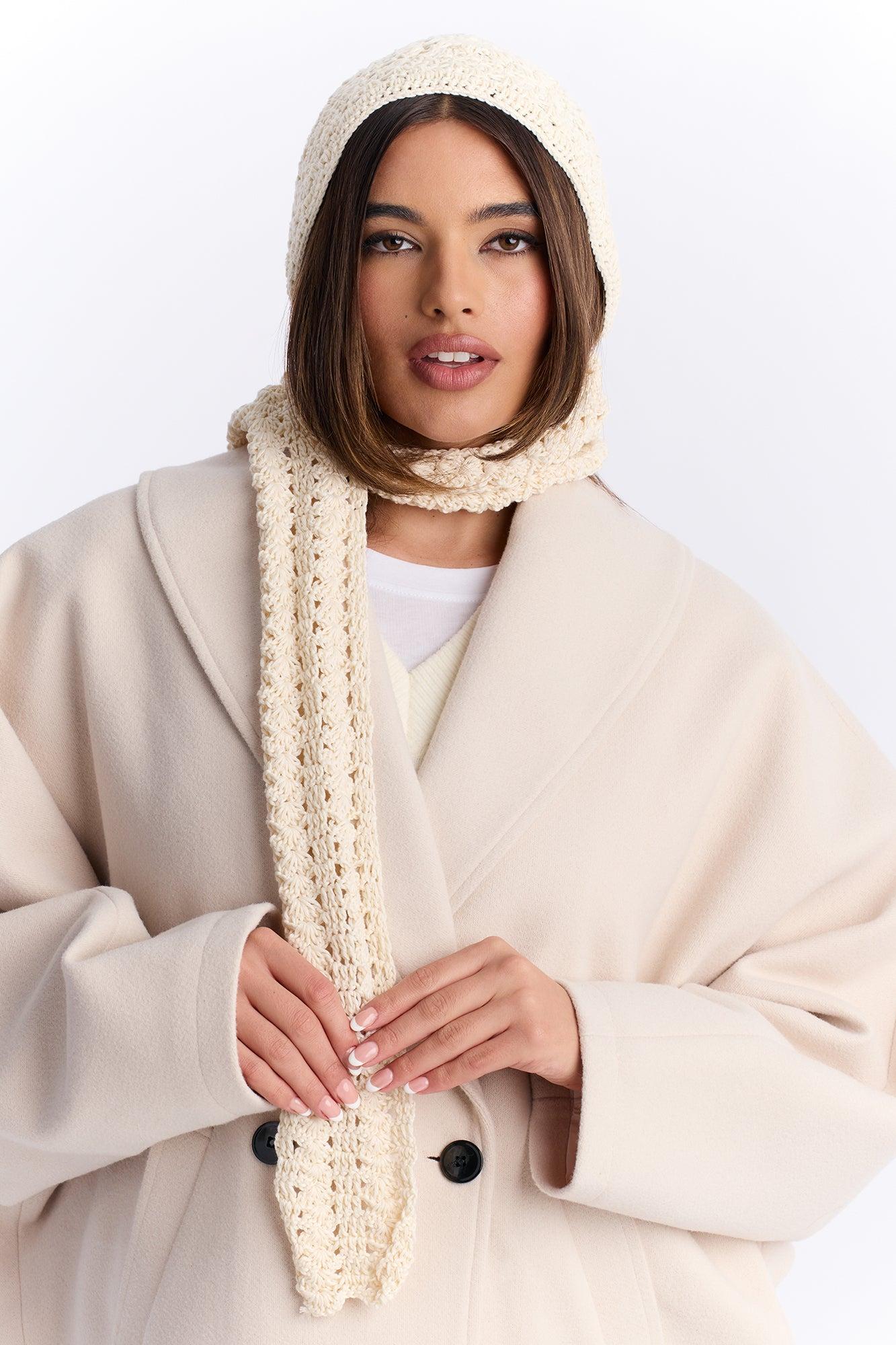 Available In Burgundy And Ivory. Crochet Head Wrap Knit Fabric Eyelet Detail 100% Cotton Imported California Proposition 65WARNING: Cancer and Reproductive Harm - www.P65Warnings.ca.gov.