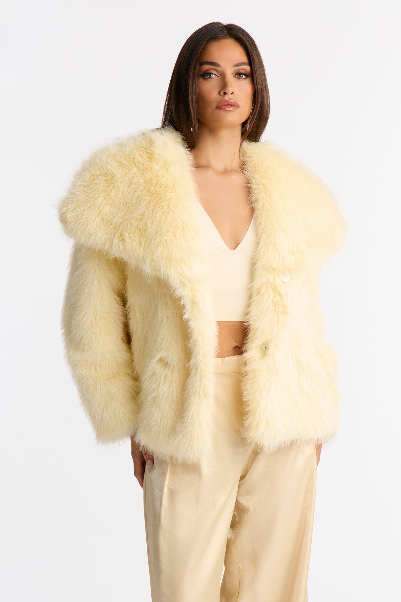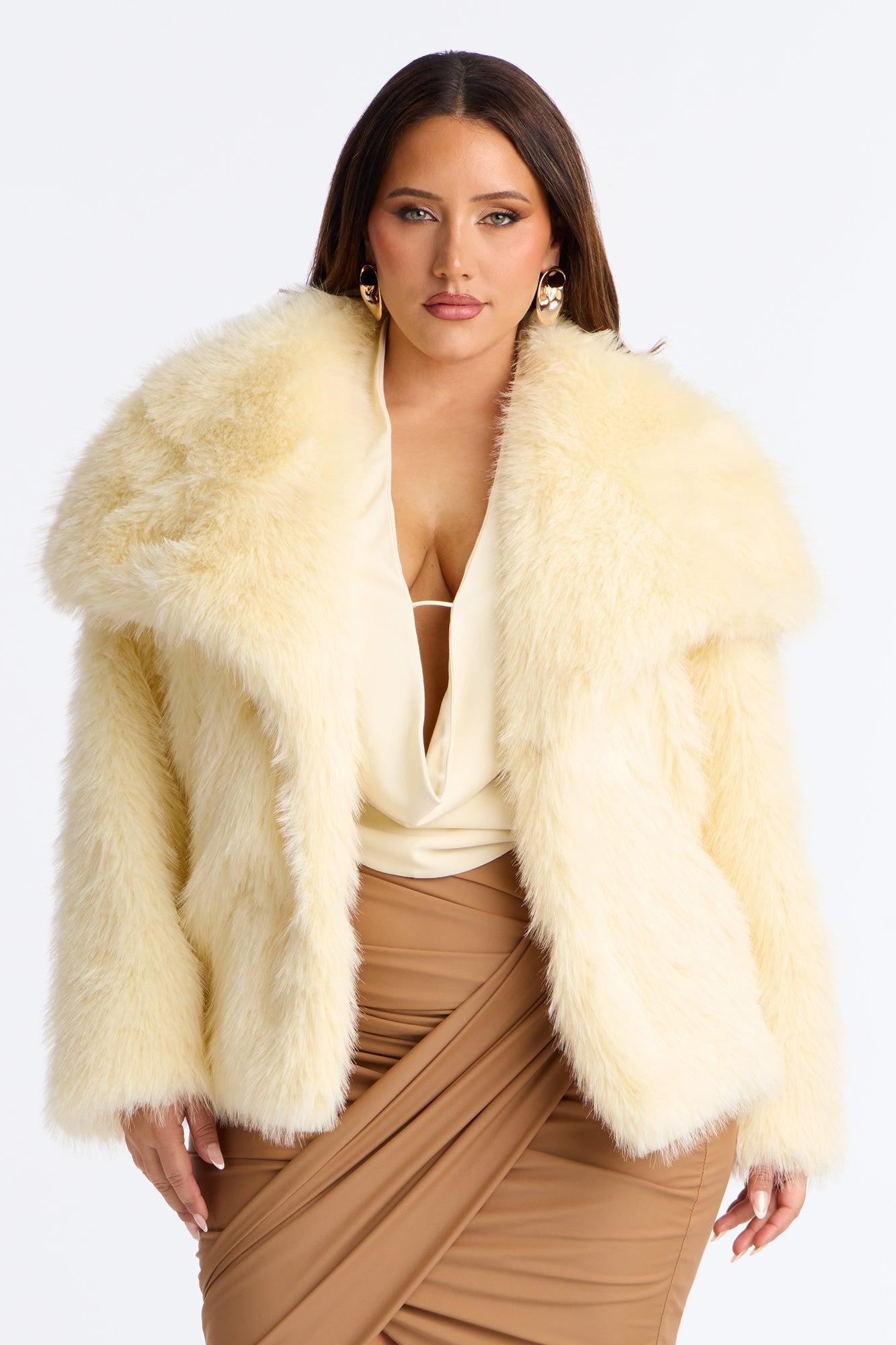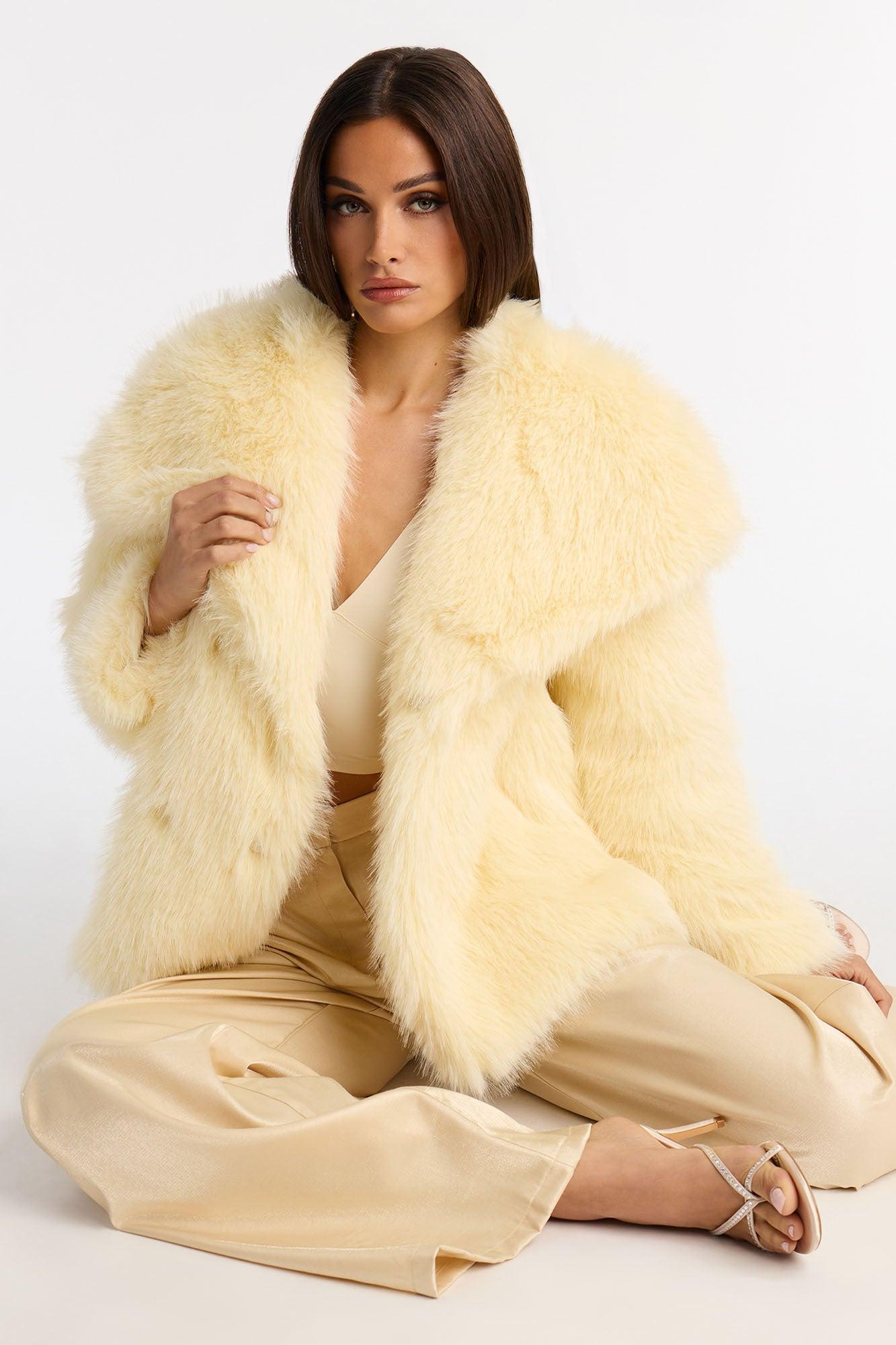Winter Party Faux Fur Coat - Yellow Female
