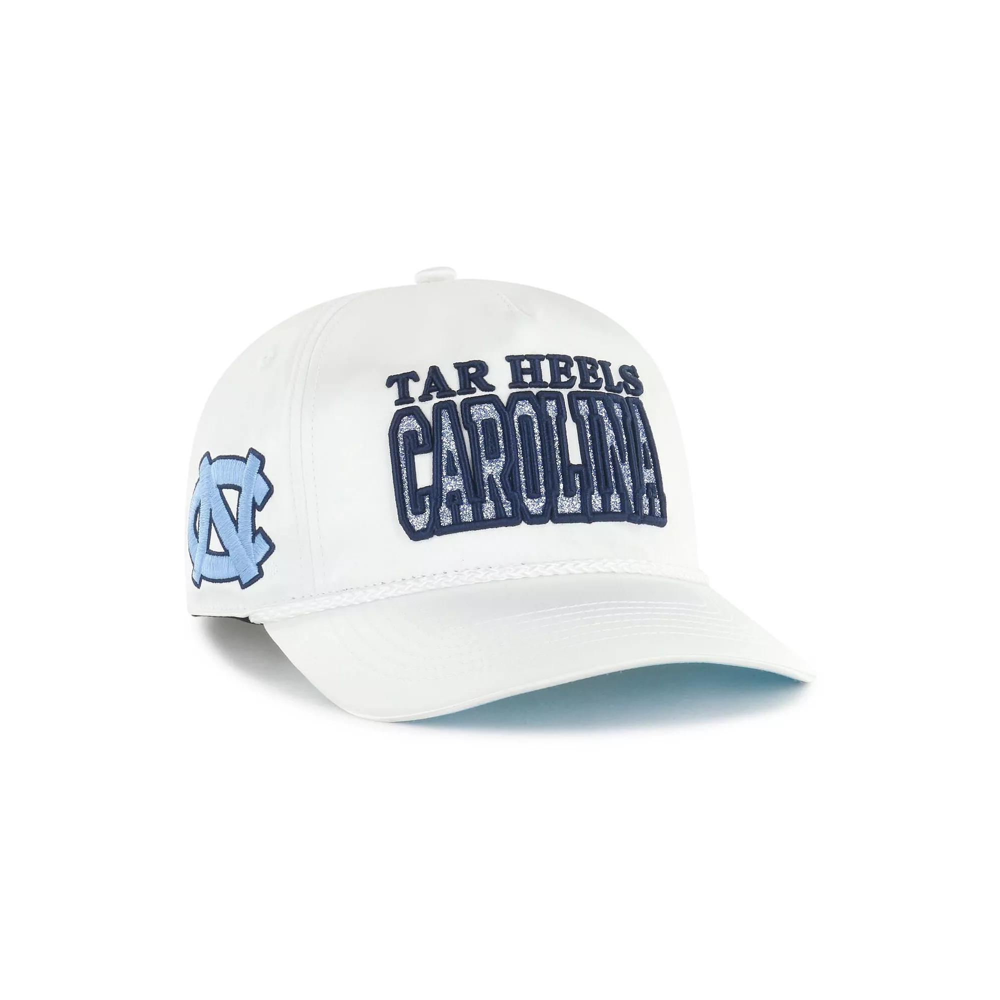Let your North Carolina Tar Heels fandom sparkle for all to see in this Outspoken Hitch Adjustable Hat from '47.Featuring a satin finish and stylish rope embellishment across the visor, this North Carolina Tar Heels cap offers a unique and eye-catching design that sets it apart from the rest. The embroidered team wordmark with sparkling accents adds a touch of opulence, making it the perfect accessory for any stylish fan ready to catch the big win. Solid front panel. Embroidered team wordmark with raised details and sparkling accents on front panel. Satin finish. Officially licensed. Mid and rear panels with eyelets. Material: 100% Polyester. Machine wash, tumble dry low. Embroidered team logo on right-side panel. One size fits most. The Hitch is a retro-inspired silhouette constructed with a pinched five-panel crown and a braided rope cord. Snap Closure. Brand: '47. Structured fit. Curved bill. Imported. Mid Crown. Color: White. Gender: female. Age Group: adult. Material: COTTON.