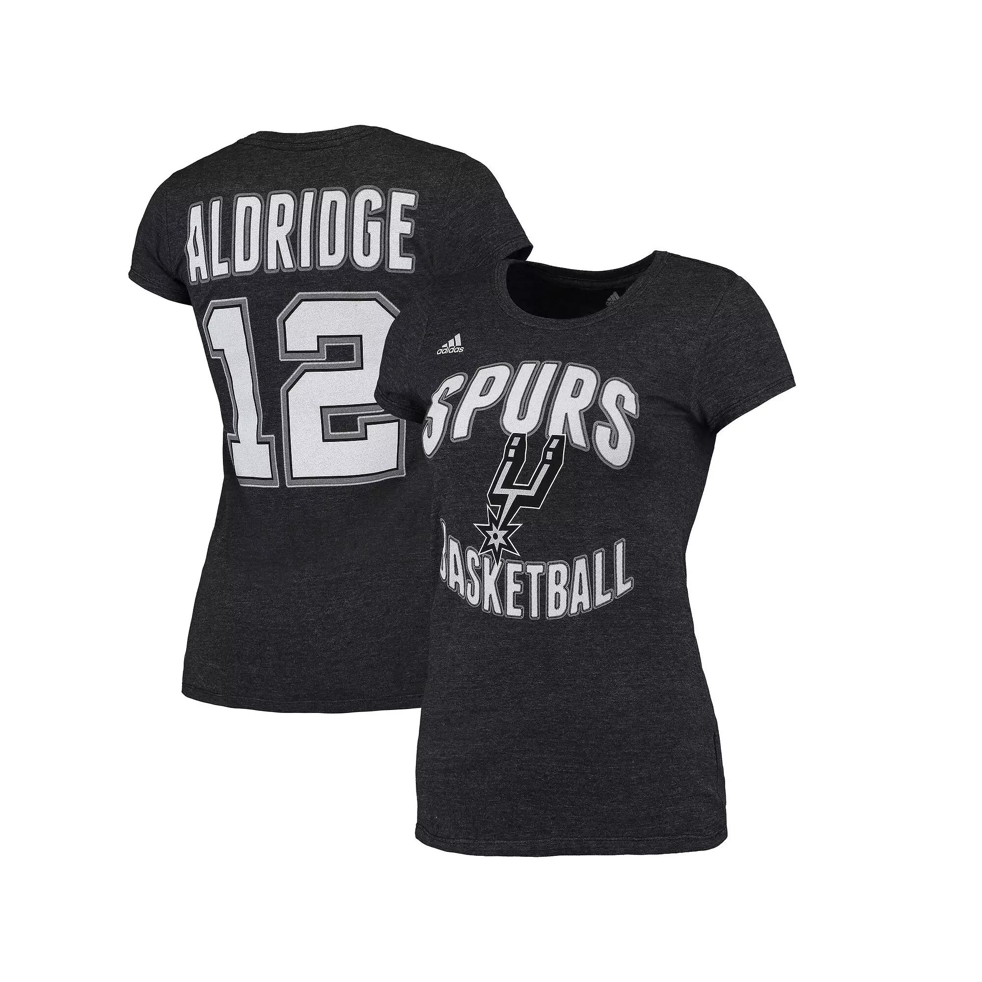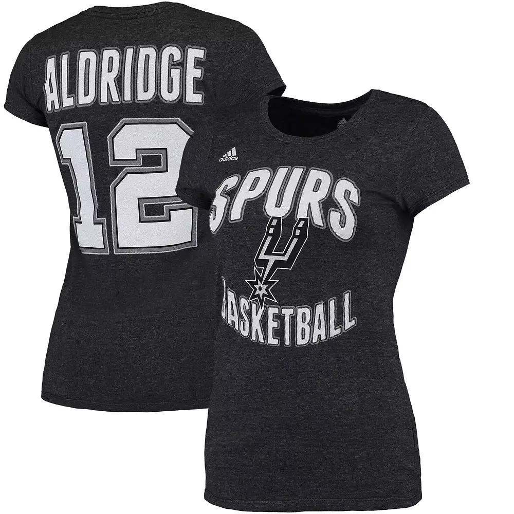 Get ready to cheer on your San Antonio Spurs with this trendy LaMarcus Aldridge Name and Number T-shirt from adidas.Get ready to cheer on your San Antonio Spurs with this trendy LaMarcus Aldridge Name and Number T-shirt from adidas.PRODUCT FEATURESBrand: adidasCrew neckImportedMachine wash, tumble dry lowMaterial: 100% CottonOfficially licensedScreen print graphicsShort sleeveSizing Tip: Product runs true to size. For a looser fit, we recommend ordering one size larger than you normally wear. Color: Black. Gender: female. Age Group: adult.