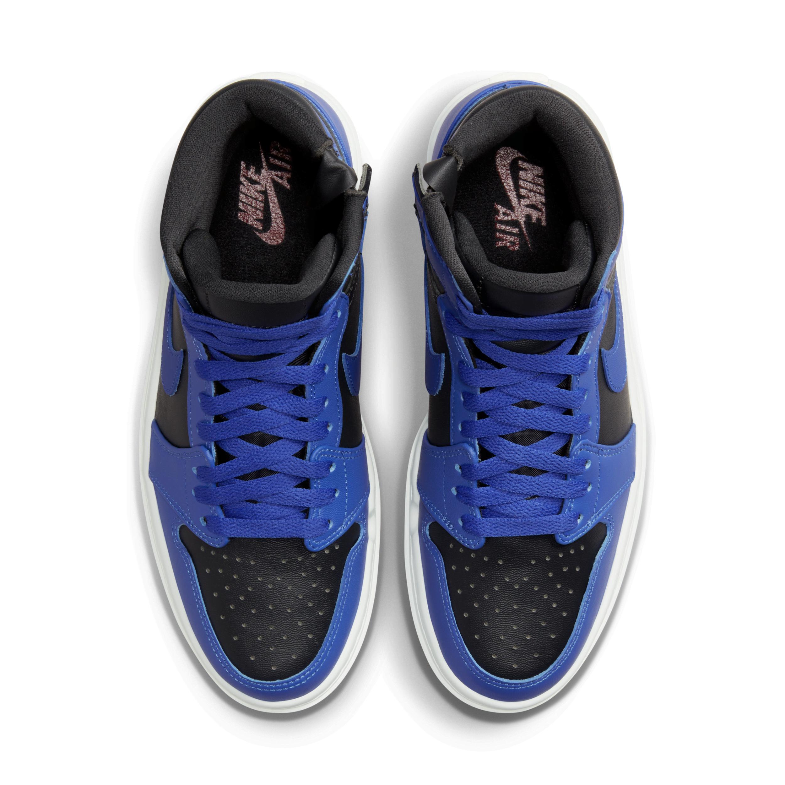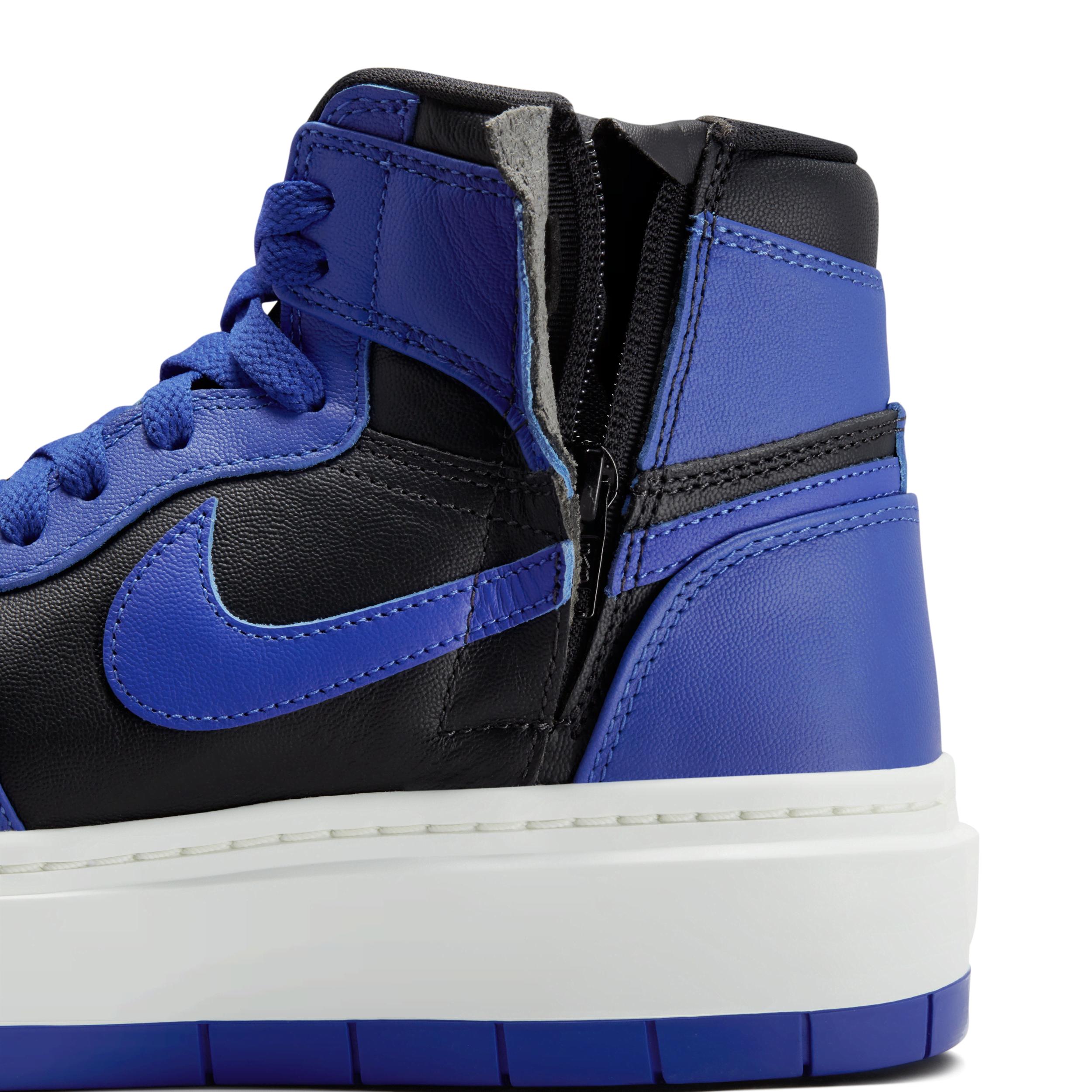 Classic Jordan style reaches new heights in this lifted AJ1. The platform stance and high-top collar make a statement while crisp leather and flashy finishes make these kicks the winning assist your outfit needs. For added flex, the puffy, stitched-on Wings "logo" delivers big (and just wait until you feel the ultra-comfortable Air cushioning underfoot). Go ahead, elevate your game. Benefits:Platform sole adds style and stability to a classic silhouette. Nike Air technology absorbs impact for cushioning with every step. Classic cupsole construction gives you durability, traction and support. [] Details:Perforated toe. Zippered side. Style: DN3253; Color: Dark Ash/Sail/Hyper Royal; Size: 7.5; Gender: Female; Age Group: Adult | Air Jordan 1 Elevate High Women's Shoes in Grey, Size: 7.5 | DN3253-204