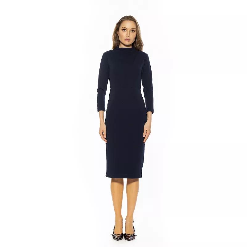 Get ready to turn heads in this must-have ALEXIA ADMOR dress that combines elegance with just the right touch of drama. Featuring a chic mockneck and a beautifully draped bodice that flows into a fitted skirt, this piece promises to hug your curves perfectly while keeping you feeling confident and oh-so-stylish for any occasion. Click on this WOMEN'S GUIDE to find the perfect fit and more! - https://www.kohls.com/feature/womens-fit-guide.jsp. FEATURES: Draped bodice adds elegance, Fitted skirt enhances silhouette. FIT & SIZE: True to size, Sheath silhouette, 45.5-in. length from shoulder to hem, Midi length hits below the knee. MATERIAL & CARE: Polyester, spandex, Partially lined, Machine wash and tumble dry. DETAILS: Zipper closure, Mockneck, Long set-in sleeves, Imported. Size: X Small. Color: Navy. Gender: female. Age Group: adult. Material: KNIT.