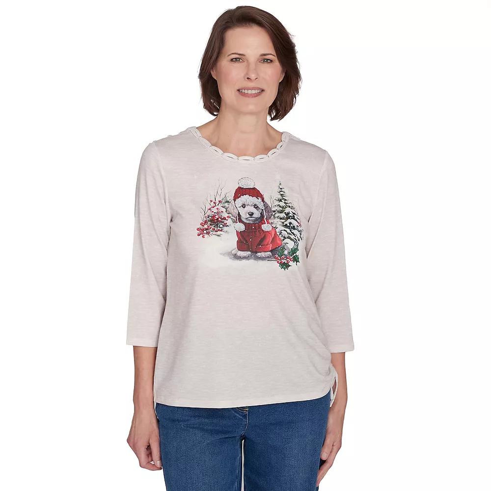 Holiday style is yours with this womens Festive Poodle Top from Alfred Dunner.Click on this WOMENS GUIDE to find the perfect fit and more! Holiday style is yours with this womens Festive Poodle Top from Alfred Dunner.Click on this WOMENS GUIDE to find the perfect fit and more! FEATURES Crewneck 3/4-length sleeves No closure - pullover stylingFIT & SIZING 22 1/4-in. length from shoulder to hemFABRIC & CARE Polyester, metal, spandex Machine wash and tumble dry Imported Size: XL Petite. Color: Oatmeal. Gender: female. Age Group: adult.