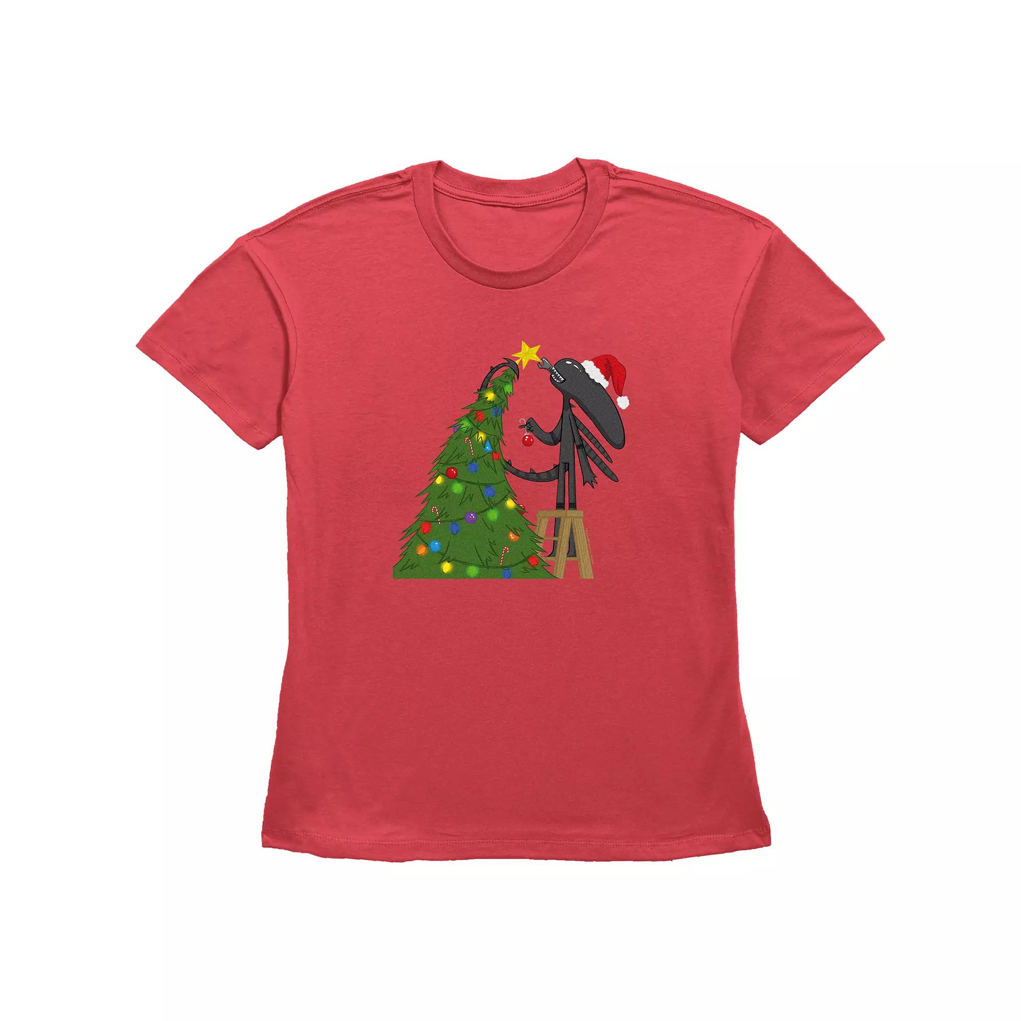 Women's Alien Xenomorph Christmas Ready Graphic Tee,