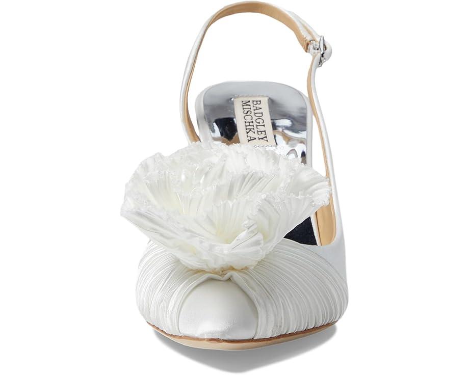 Take your fashion game to new heights wearing the Badgley Mischka® Blaire Pumps. The low-top footwear features silk upper with three-dimensional floral motif and buckle adjustable slingback strap closure.