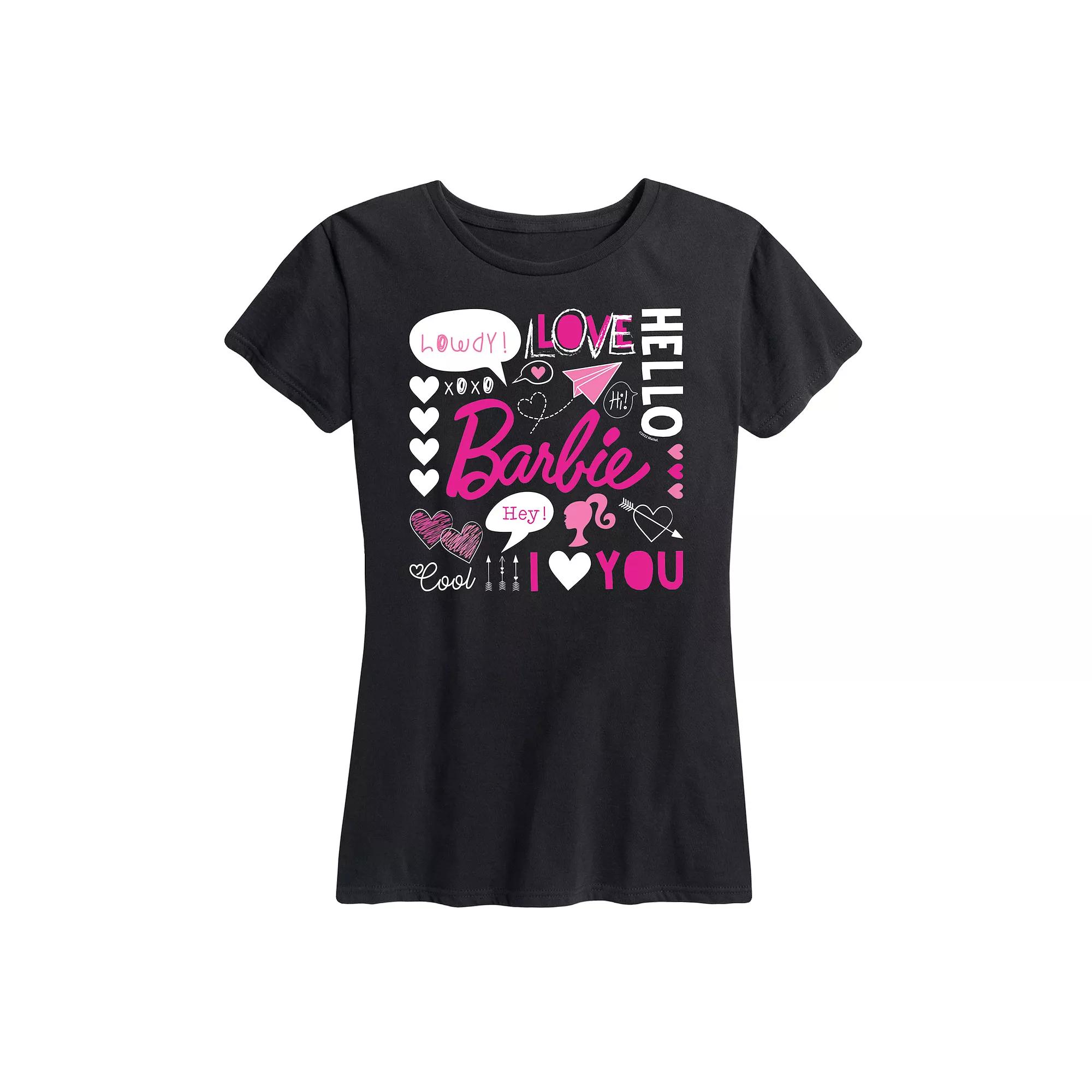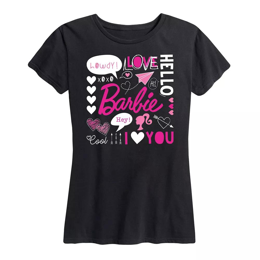 She will love showing off her style with this Womens Barbie Valentine Collage. BARBIE and associated trademarks and trade dress are owned by, and used under license from, Mattel. 2023 Mattel. FEATURES Short sleeves CrewneckFABRIC & CARE Solid Color: Cotton ; Heather Colors: Cotton/Polyester Machine wash Imported Size: Large. Color: Black. Gender: female. Age Group: adult. Pattern: Graphic.