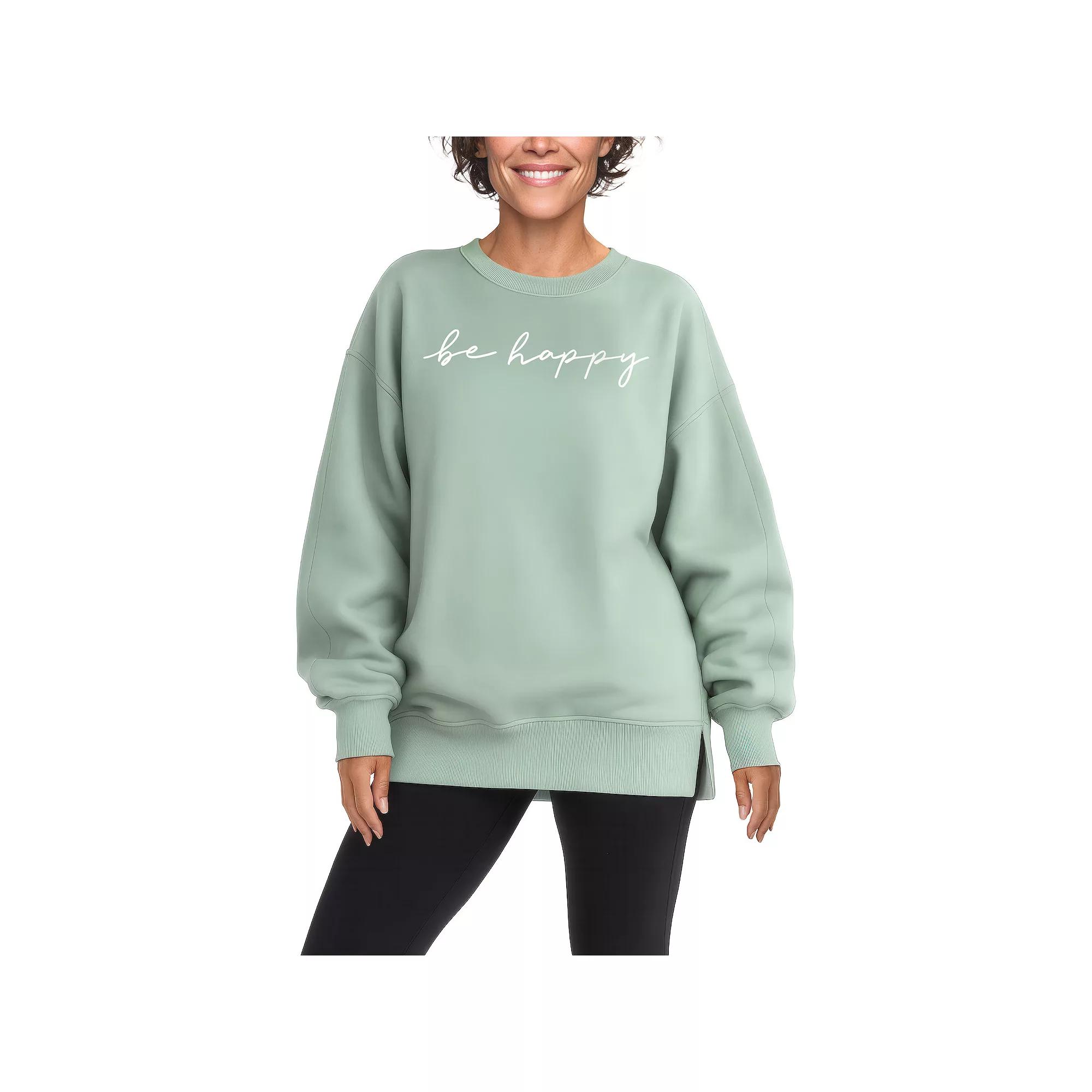 Embrace your cozy side with this oversized fleece crew sweatshirt that reminds you to just be happy. Perfect for lazy weekends or a quick coffee run, it's like a warm hug that makes every day feel a little brighter. Click on this WOMEN'S GUIDE to find the perfect fit and more! - https://www.kohls.com/feature/womens-fit-guide.jsp. FIT & SIZE: Oversized fit. MATERIAL & CARE: Body: cotton, polyester, fleece, Machine wash. DETAILS: Crewneck, Long sleeves, Imported. Size: Large. Color: Seafoam. Gender: female. Age Group: adult.