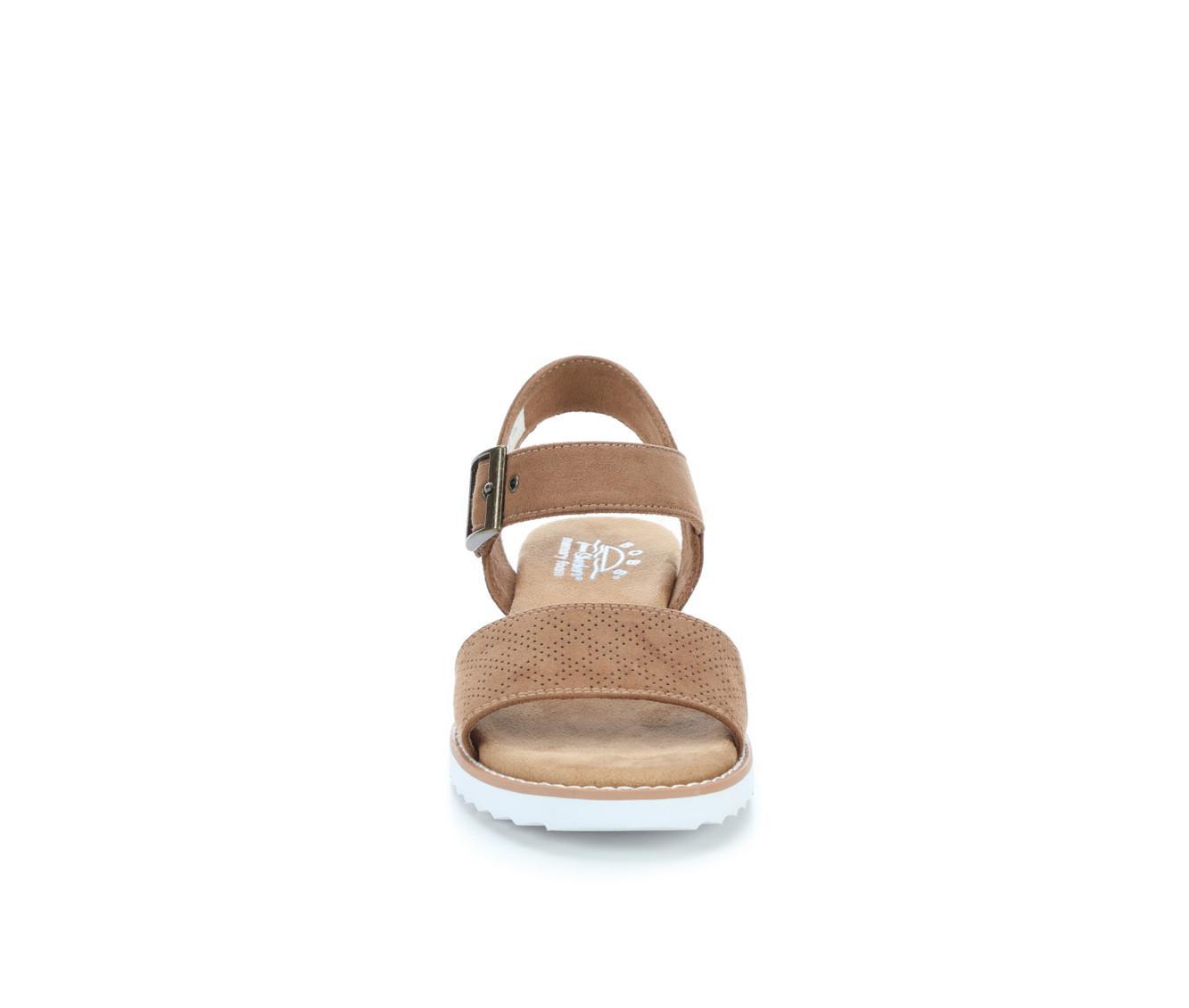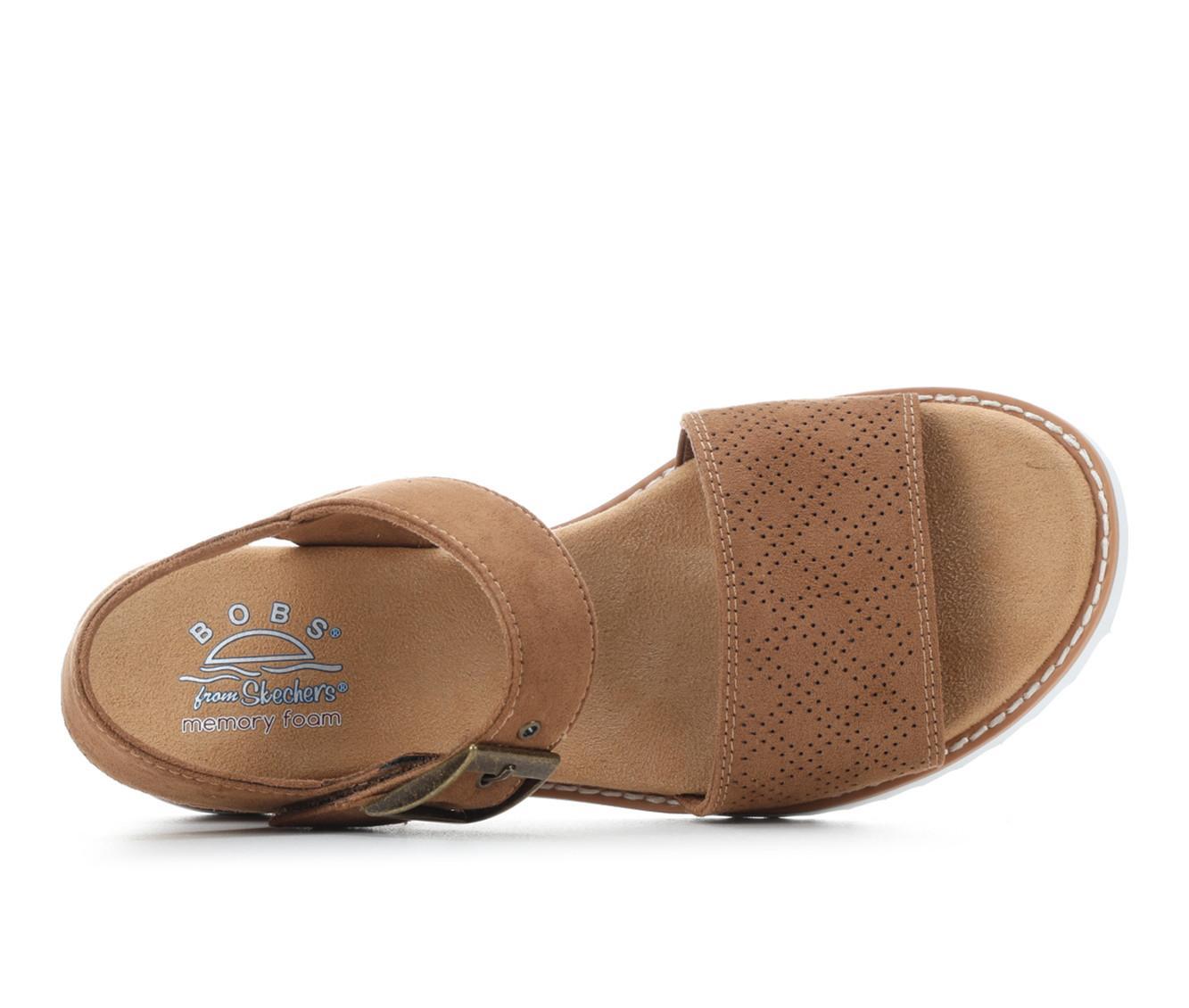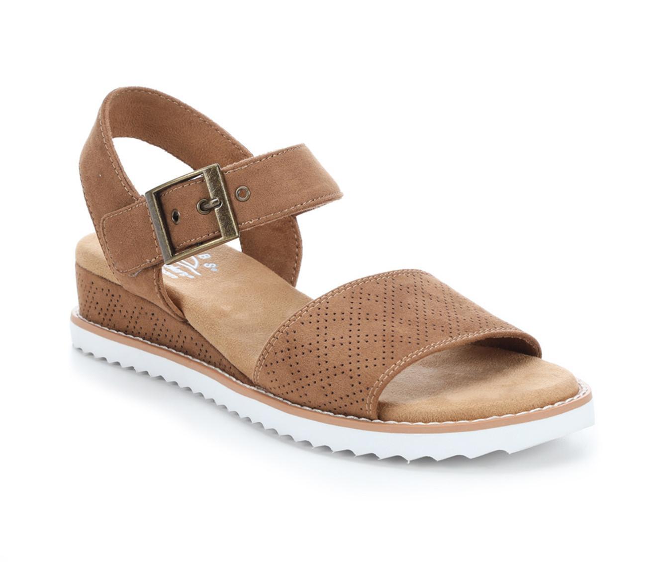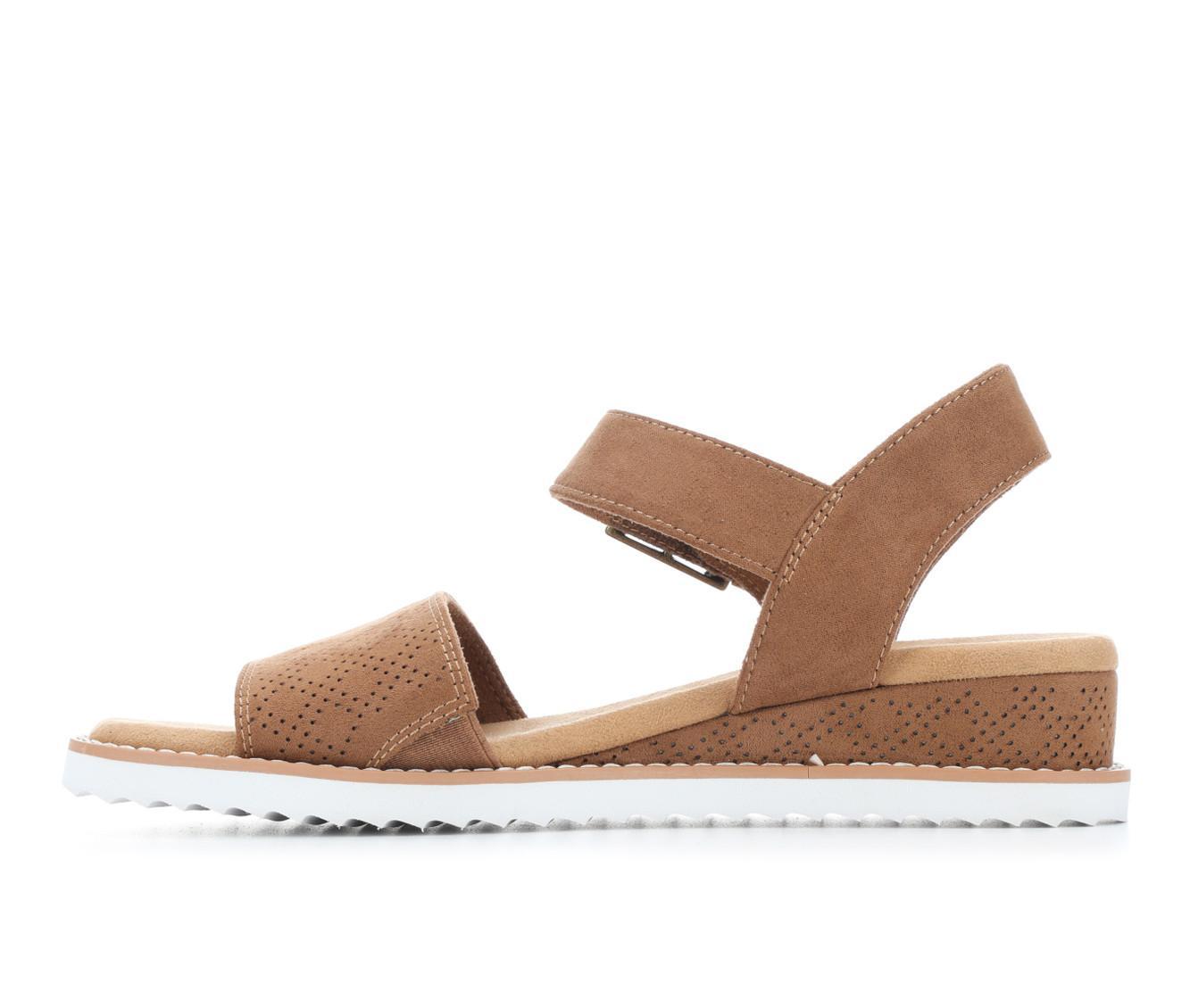 Step into effortless summer style with the Women's BOBS Desert Kiss - Serendipitous Wedge Sandals from Skechers. These sandals feature a faux suede upper with perforation details, a metallic-buckled instep strap, and a cushioned Skechers Memory Foam™ footbed for all-day comfort. Designed with 100% vegan materials, they also feature a low wedge midsole with perforated trim and a flexible sawtooth traction outsole for added support and durability.