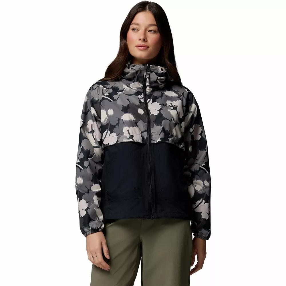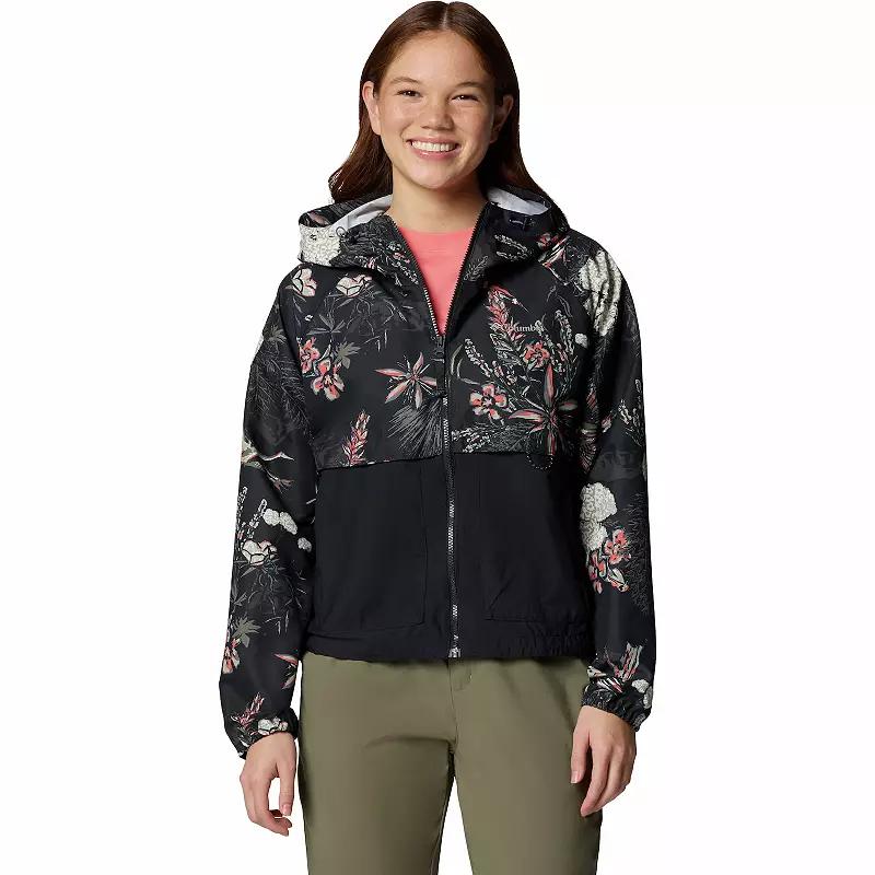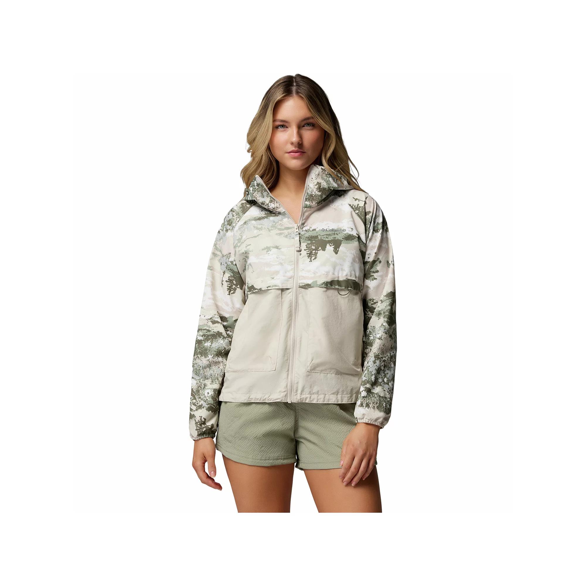 Stay dry and look your best in this Spire Valley Omni-SHIELD Printed Windbreaker Jacket from Columbia. Click on this WOMEN'S GUIDE to find the perfect fit and more! - https://www.kohls.com/feature/womens-fit-guide.jsp. FEATURES: Omni-SHIELD™ advanced repellency, Omni-SHADE™ UPF 50 sun protection, Drawcord adjustable hood, Long sleeves, Elastic cuffs, Zipper closure with chin guard, 2 zipper pockets, Back venting system, Adjustable drawcord hem, Unlined, Woven construction. FIT & SIZING: Lightweight warmth rating, Regular fit, 23-in. length from shoulder to hem, Designed to hit at the waist. FABRIC & CARE: Polyester, Machine wash, Imported. Size: Small. Color: Safari Rays. Gender: female. Age Group: adult.