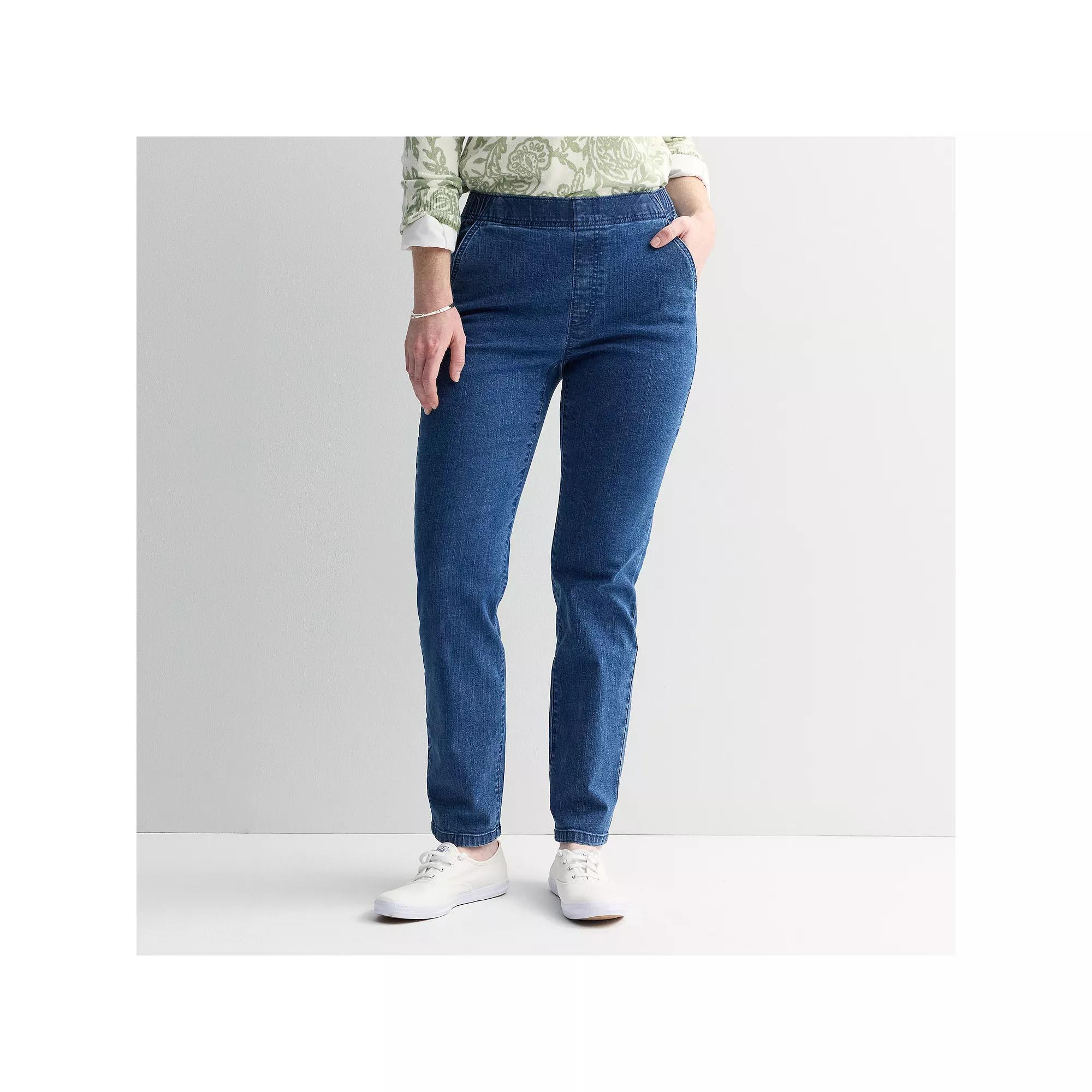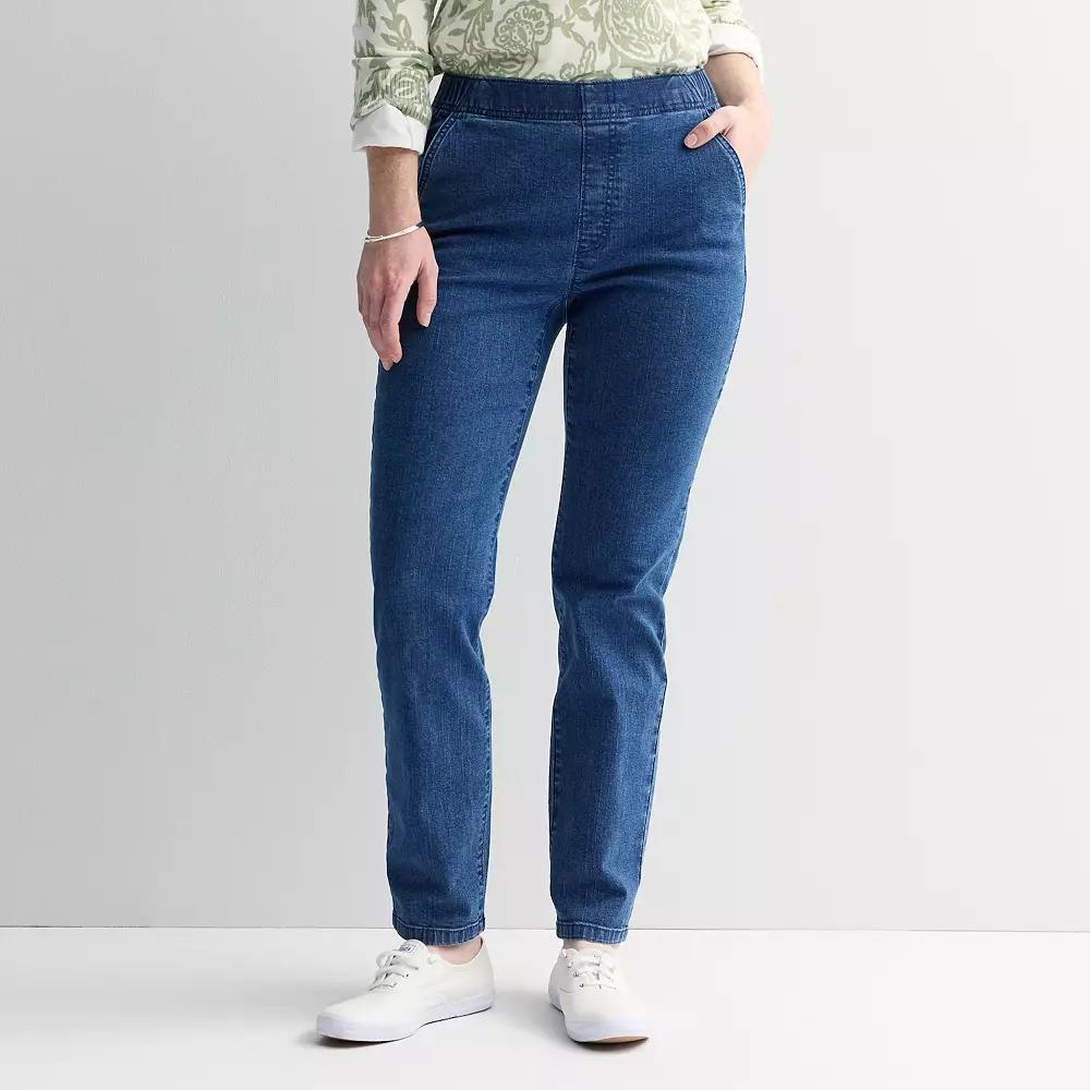 Embrace effortless style with these Croft & Barrow pull-on denim pants, designed for comfort and convenience. With a flattering straight leg cut, you'll feel both chic and cozy whether you're running errands or enjoying a leisurely brunch. Click on this WOMEN'S GUIDE to find the perfect fit and more! - https://www.kohls.com/feature/womens-fit-guide.jsp. FEATURES: Soft handfeel for all-day comfort, Convenient pull-on style. FIT & SIZE: Relaxed fit through the hip and thigh, Super high rise sits on the natural waistline, Petite short: 25-in. inseam, Petite: 27-in. inseam, Straight 7 1/2-in. leg opening, Elastic waistband. MATERIAL & CARE: Body: cotton, rayon, spandex, Machine wash and tumble dry low. DETAILS: No closure - pull-on styling, 2 slash pockets at front, Imported. RESPONSIBLE Supports more sustainable cotton farming, Tested for harmful substances, STANDARD 100 by OEKO-TEX® CERTIFIED, Certification No. 2021OK2154, Testing Institute: AITEX®, www.oeko-tex.com/standard100 - https://www.oeko-tex.com/en/our-standards/oeko-tex-standard-100. Size: PS Short. Color: Medium Wash. Gender: female. Age Group: adult.