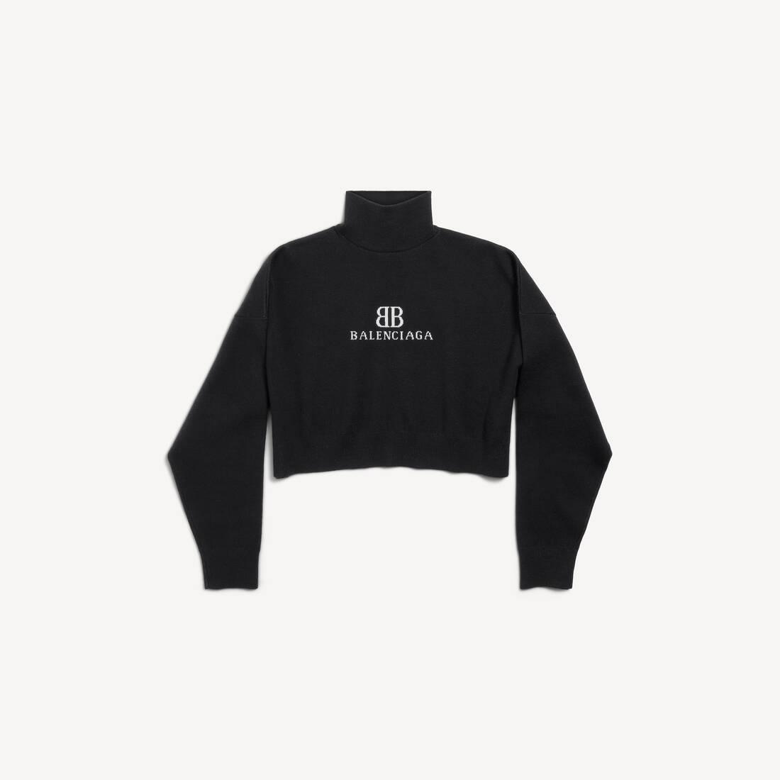 Women's Balenciaga Back Cropped Long Sleeve T-shirt in Black/white