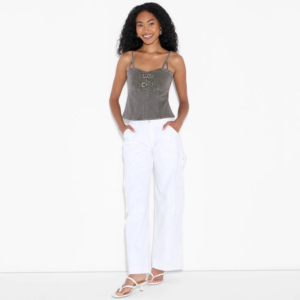 Denim corset tank top from Wild Fable™ with classic stitching accents. Features a sweetheart neckline with a double-buckle front and adjustable shoulder straps. Tailored in a fitted silhouette with a full-length zipper back and a long-length hem. Made from midweight cotton denim fabric with spandex for comfortable wear that moves with you. If you're not satisfied with any Target Owned Brand item, return it within one year with a receipt for an exchange or a refund. Wild Fable™: A look for every story.