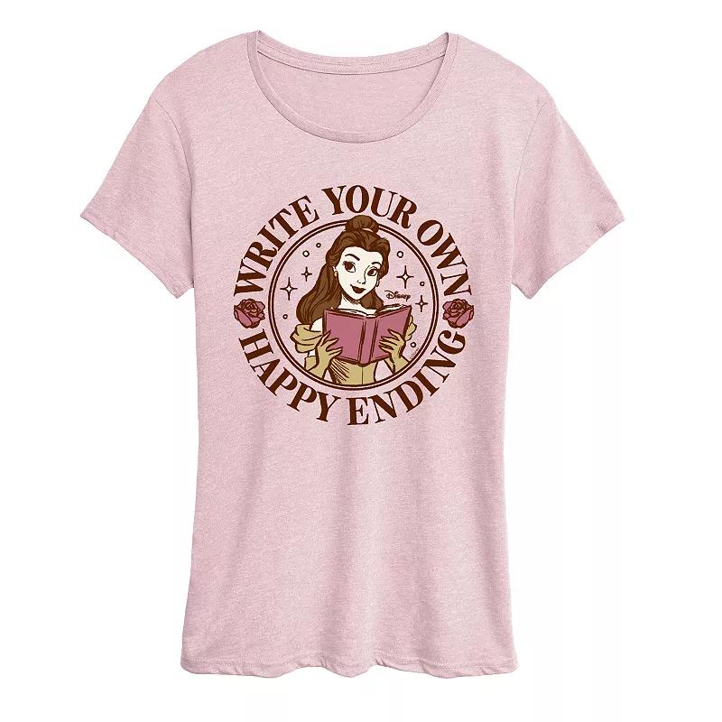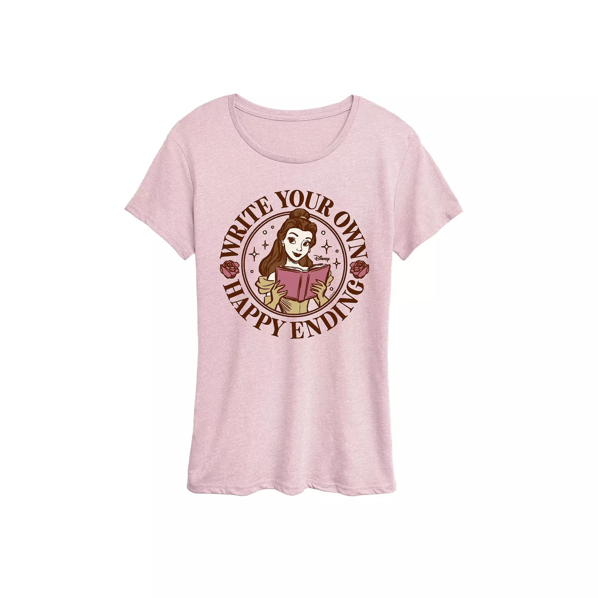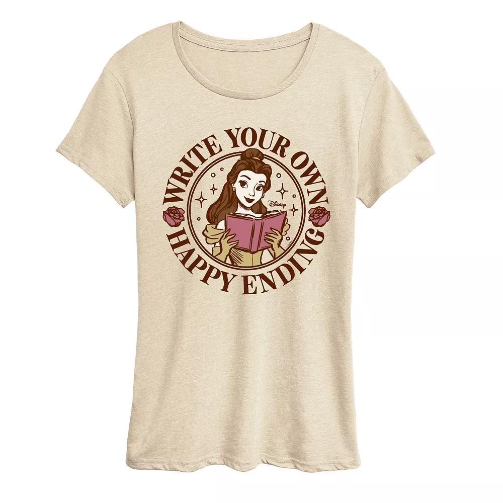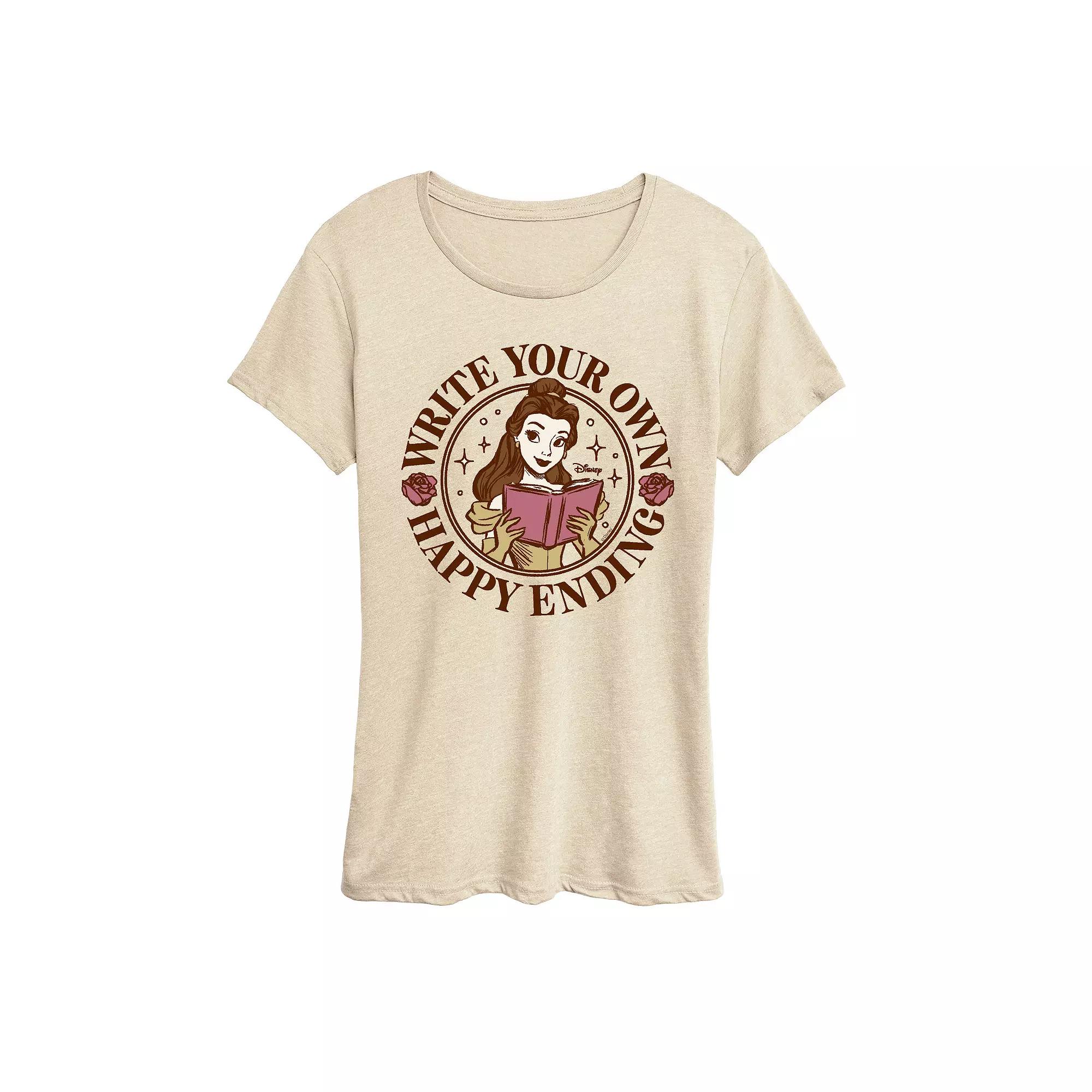 Get ready to channel your inner princess with this delightful graphic tee featuring the iconic Belle, reminding us all to write our own happy endings. Perfect for pairing with jeans or a cozy skirt, this shirt brings a touch of magic to your everyday style while letting everyone know that adventure awaits just around the corner. Click on this WOMEN'S GUIDE to find the perfect fit and more! - https://www.kohls.com/feature/womens-fit-guide.jsp. FIT & SIZE: Fitted fit. MATERIAL & CARE: Body: cotton, polyester (Light Grey); cotton, polyester (Heather colors); cotton (Solid colors), Machine wash. DETAILS: Scoopneck, Short sleeves, Imported. Size: Medium. Color: White. Gender: female. Age Group: adult.
