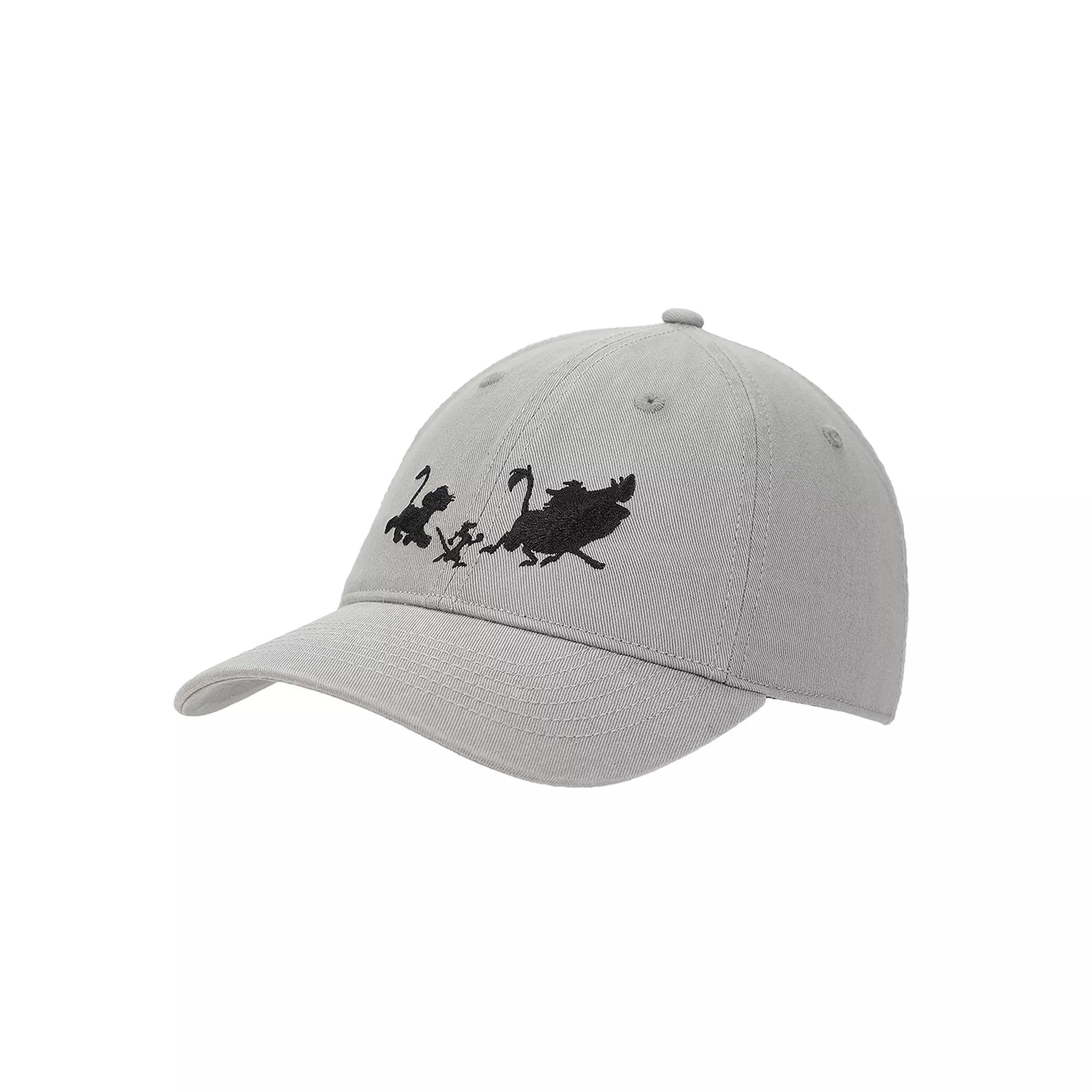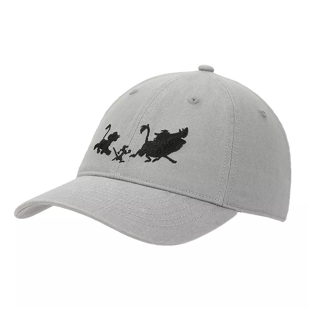 Step out in style with this charming baseball cap featuring the beloved silhouettes of Simba, Timon, and Pumba. Designed by Disney, its adjustable fit ensures comfort while adding a playful touch to your outfit, making it perfect for any adventure under the sun. ©Disney. How do you accessorize? Check out our ACCESSORIES GUIDE for essential tips to elevate your style with must-have accessories. - https://www.kohls.com/feature/accessories-guide.jsp. FEATURES: Adjustable fit. FIT & SIZE: Unstructured baseball cap, 23-in. inner circumference. DETAILS: Tuck strap with slide, Curved brim, 2.75-in. brim, Imported. MATERIAL & CARE: Cotton, Hand wash. Size: One Size. Color: Gray. Gender: female. Age Group: adult.