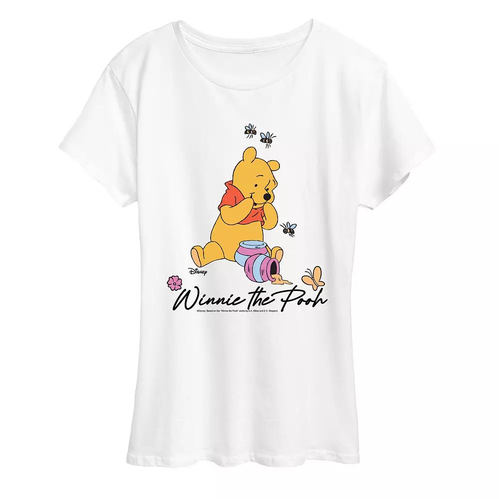 Get ready to bring a smile to your face with this delightful graphic tee featuring everyone's favorite honey-loving bear. The playful design captures the whimsical charm of Disney's Winnie the Pooh, making it the perfect addition to your casual wardrobe for cozy weekends or joyful outings. Click on this WOMEN'S GUIDE to find the perfect fit and more! - https://www.kohls.com/feature/womens-fit-guide.jsp. FIT & SIZE: Classic fit. MATERIAL & CARE: Body: cotton, polyester, French Terry, Machine wash. DETAILS: Scoopneck, Short sleeves, Imported. Size: Medium. Color: White. Gender: female. Age Group: adult.