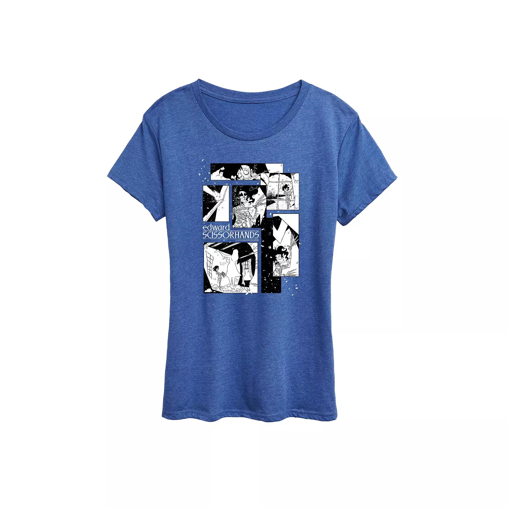 She will love showing off her style with this Women's Edward Scissorhands Panels Graphic Tee. FEATURES: Short sleeves, Scoopneck. FABRIC & CARE: Light Gray and Heather Colors: Cotton/Polyester; Solid Colors: Cotton, Machine wash, Imported. Size: Small. Color: Heather Royal Blue. Gender: female. Age Group: adult.